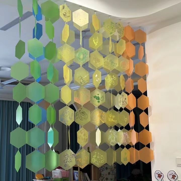 | nameOriginal | Kindergarten Hanging Decoration Material Hexagonal Pendant Handmade DIY Painting Color PVC Frosted Plastic Graffiti |
