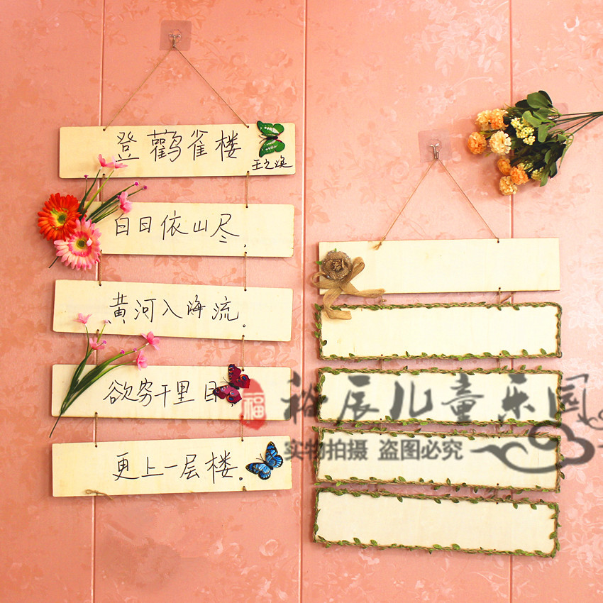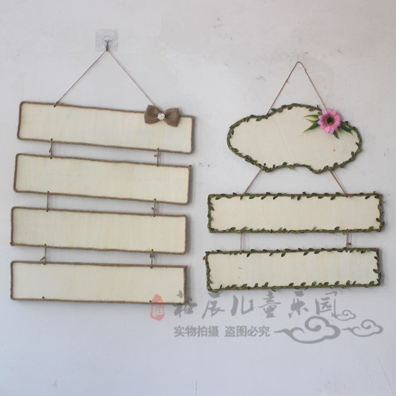 Kindergarten Huan Chuang Decorative Material Handmade diy Hemp Rope Creative Wood Board Wooden Hanging Ornament Corner Sign Slogan