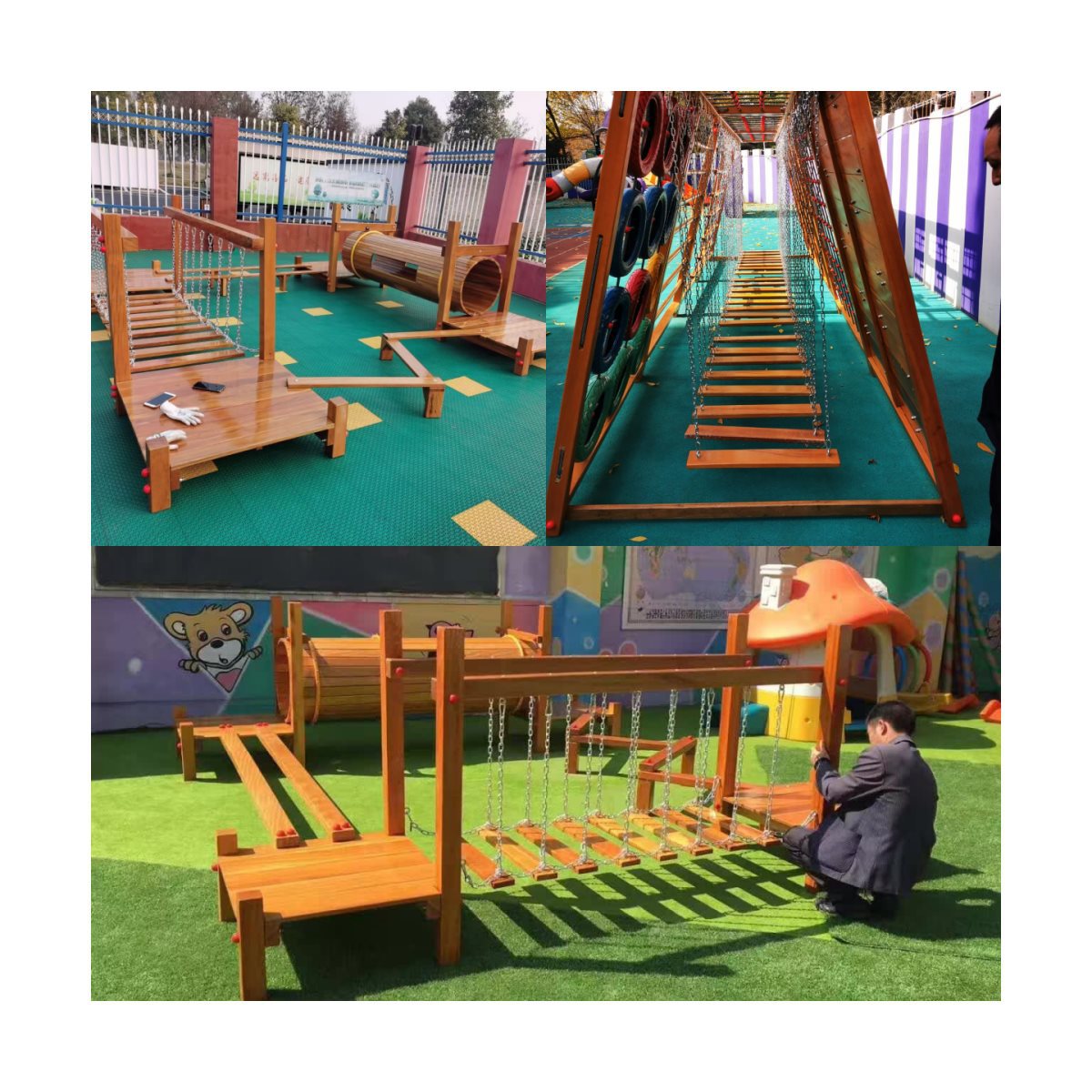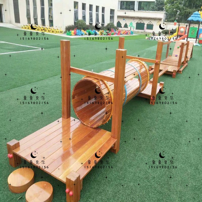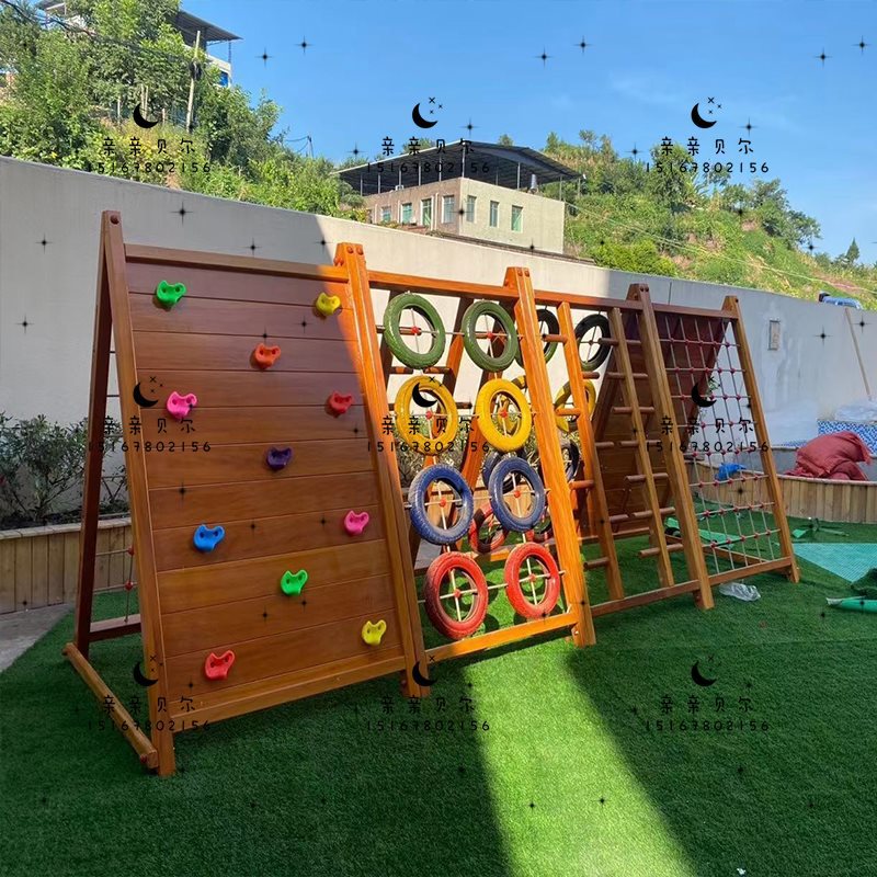 Kindergarten Outdoor Toy Climbing Frame Physical Training Combination Outdoor Children Climbing Wooden Large Slide Drilling Hole