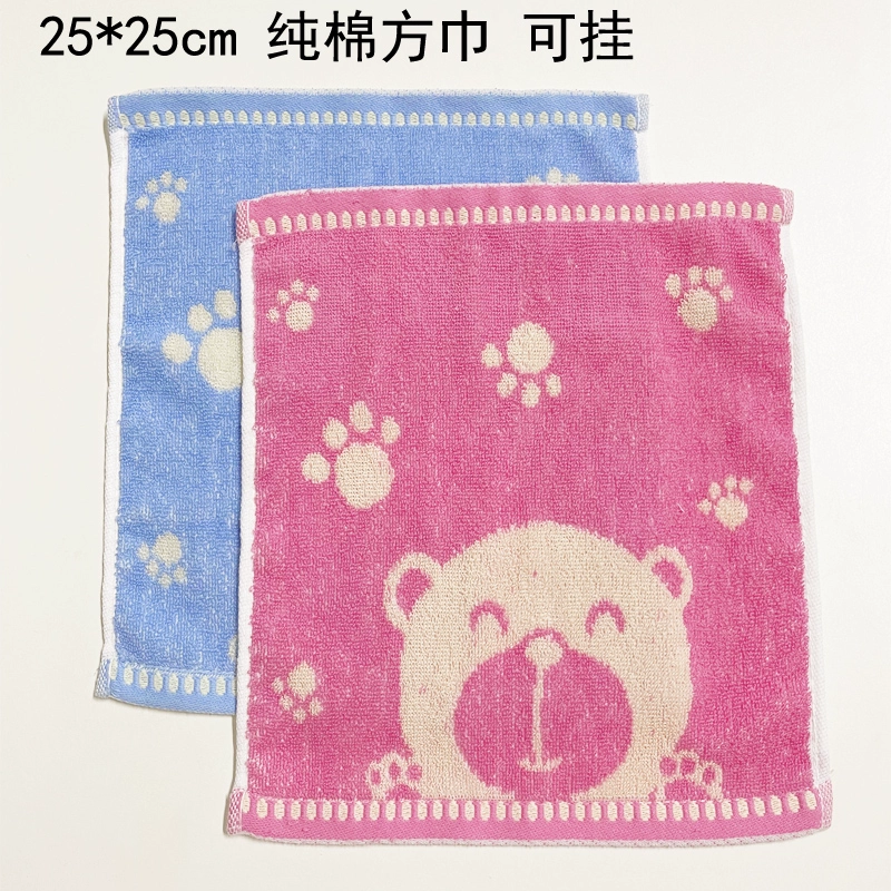 | nameOriginal | Kindergarten pure cotton hangable square towel small towel dot like cartoon duck face wash with lanyard children's home manufacturer direct sale |