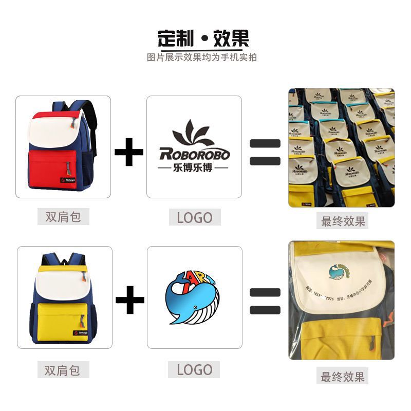 | nameOriginal | Kindergarten schoolbags set wholesale logo printing training institutions boys and girls primary school students' shoulder bags to print characters |