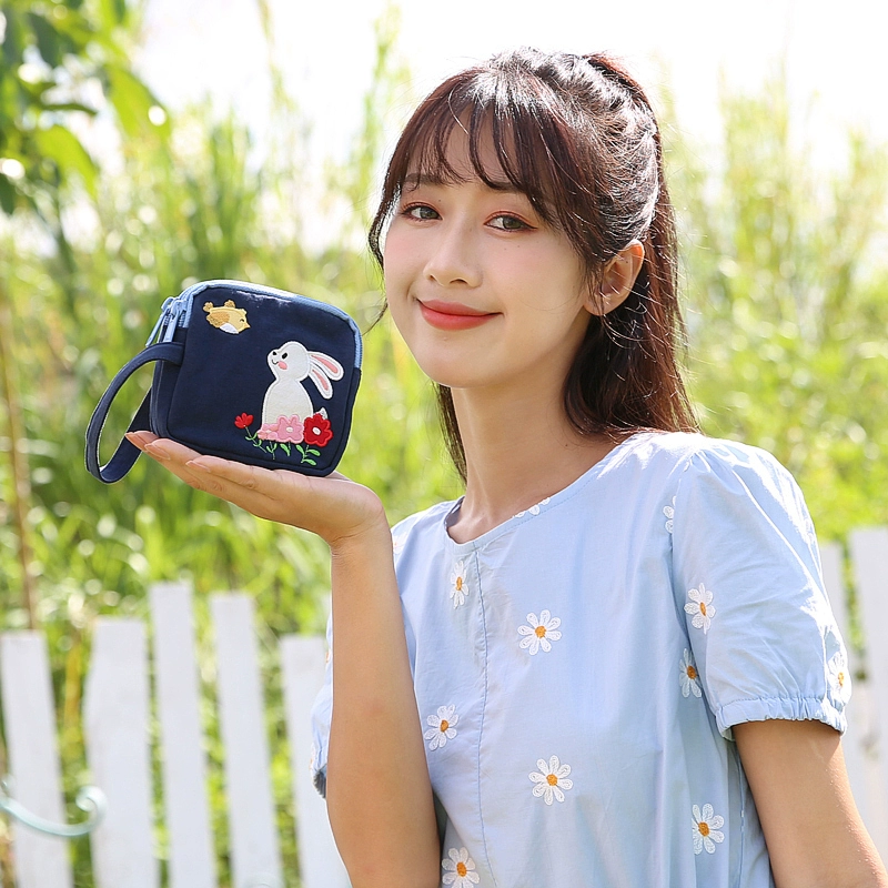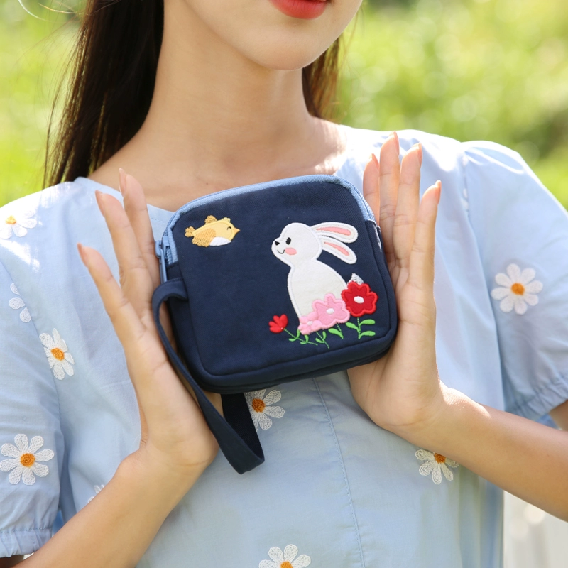 | nameOriginal | Kine cat pure cotton cartoon rabbit multi-functional three-layer zipper wrist bag for women student key coin purse card bag |