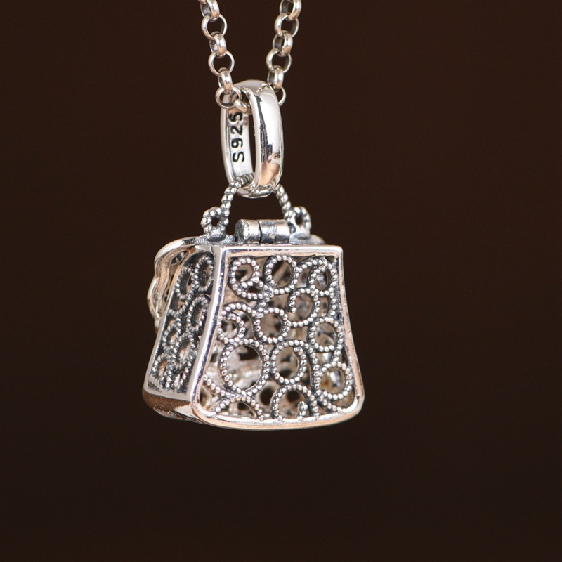 King of the Golden Deer S9225 Silver Pendant Artistic Hollow Lock Bag Women’s Lockbone Pendant Pendant Gift