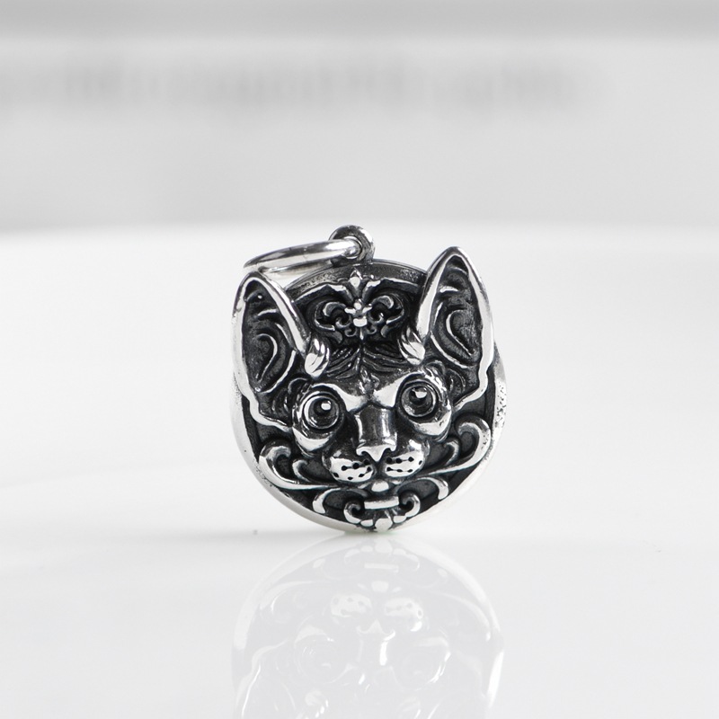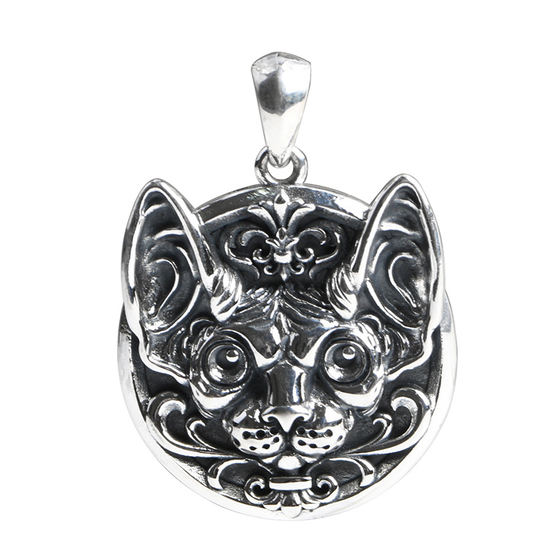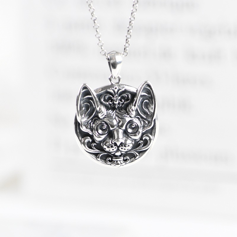 | nameOriginal | King of the Golden Deer Vintage Old Design Hair-less Cat Necklace Pendant Men's and Women's Sphinx Silver S925 Silver Pendant |