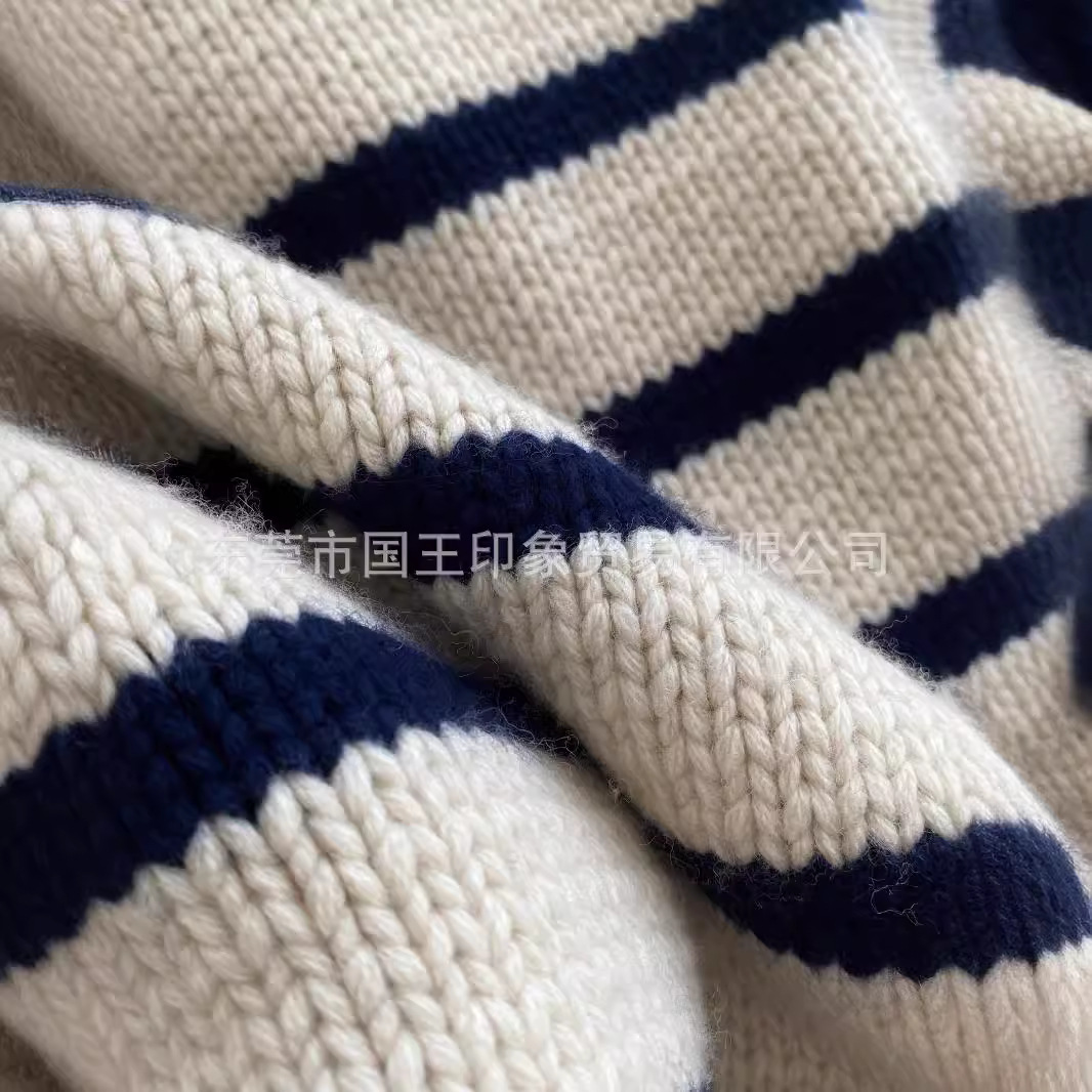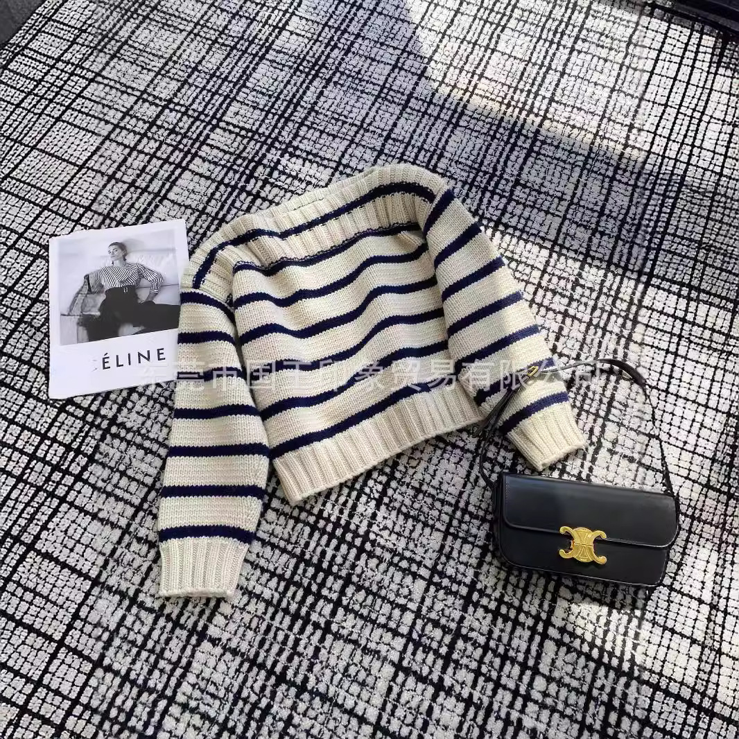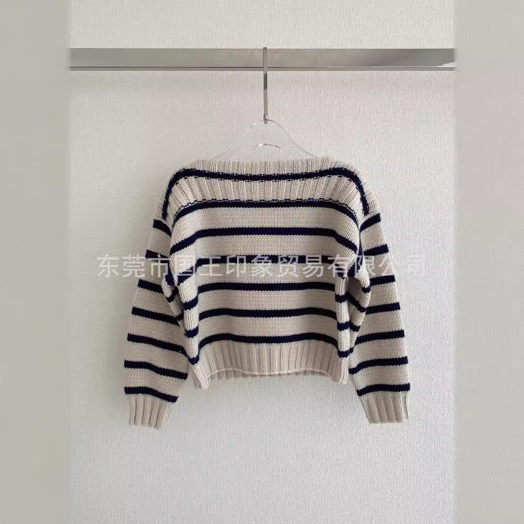 | nameOriginal | King's Impression Autumn and Winter New Style One-character Collar Striped Pure Wool Long-sleeved Women's Fashionable All-match Loose Sweater |