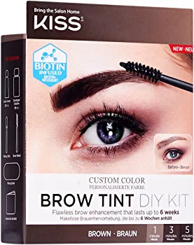 Tinting your brows at home is surprisingly easy with KISS Brow Tint DIY Kit. Cover grey and/or deepen and enhance the shape and shade of your brows. Use with brow pencil or coloured brow gel (not included) to fill in and thicken the appearance of sparse brows.
