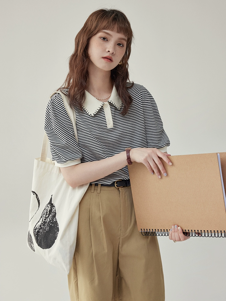 | nameOriginal | "Kitashima AMUU" Japanese design polo collar striped short-sleeved T-shirt women's summer simple classic top |