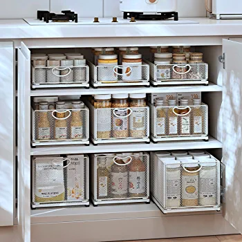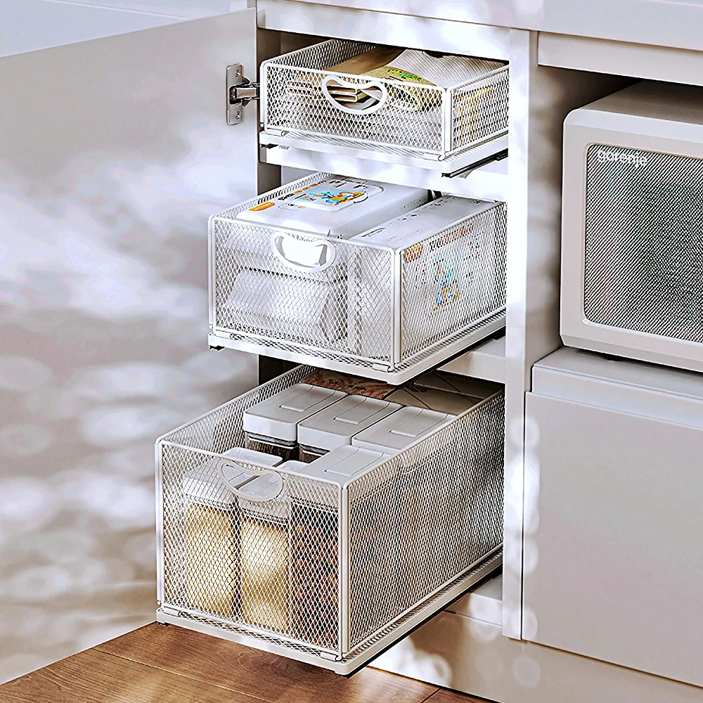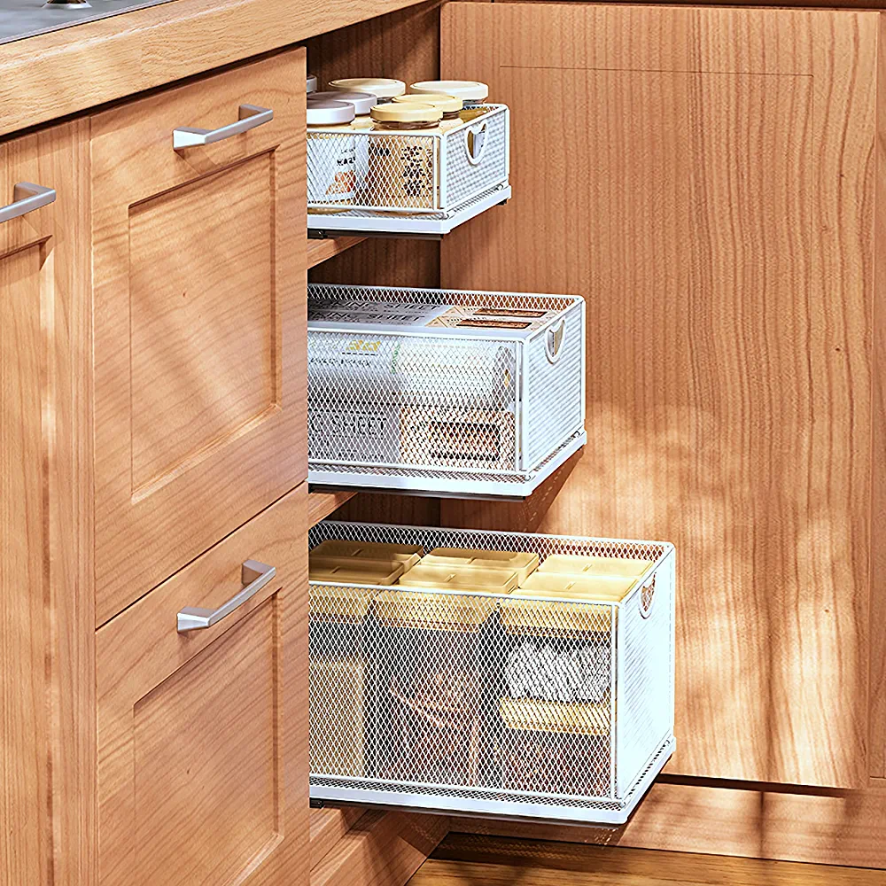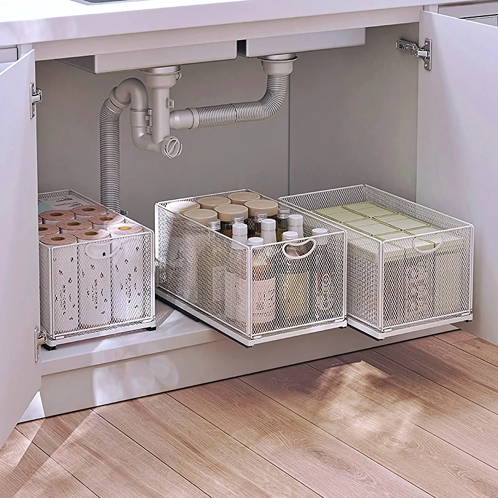 Upgrade your bathroom or kitchen with this modern and versatile product. Use it as a bathroom organizer or kitchen organizer to add style and functionality to your cabinets. Revolutionize your kitchen organization with our innovative design and superior materials. Plus, installation is super easy with our self-install option. Choose from three sizes – small, medium, and large – to fit your specific needs. Get your Slide Out Cabinet Basket today and experience the convenience of organized storage!