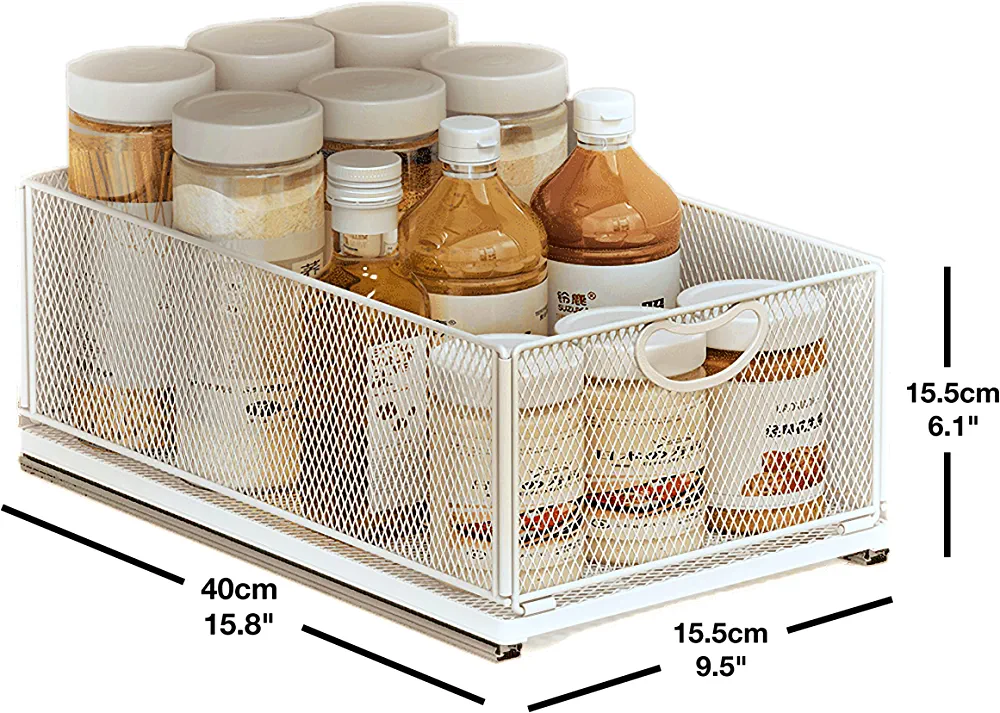 Worried about whether it will fit in your cabinets? Our Cabinet Organizer is built to fit almost any kitchen cabinet, with each basket measuring 40cm (15.75″) and the standard kitchen cabinet depth being 60cm (24″).