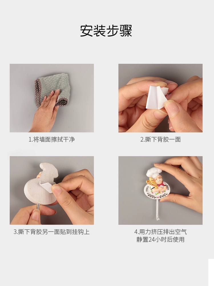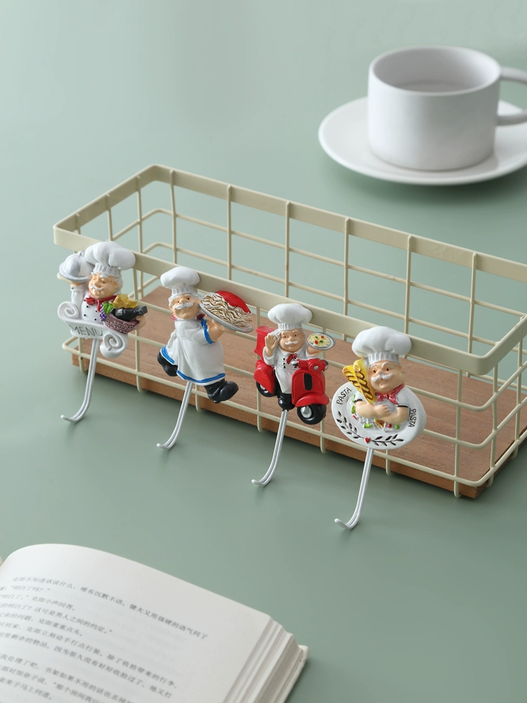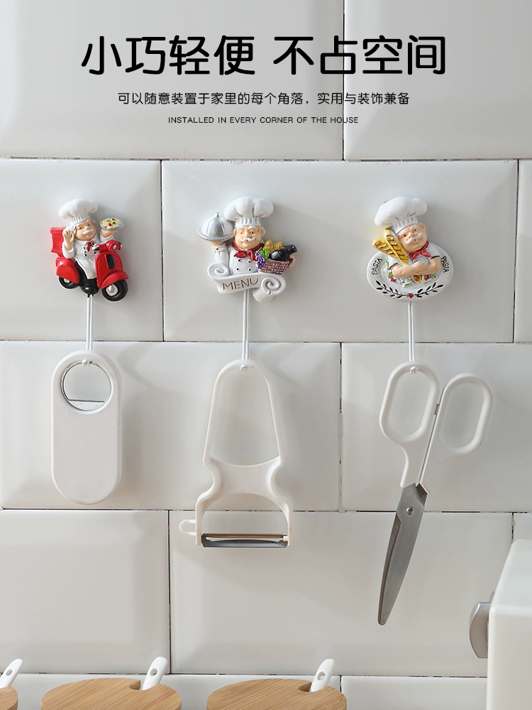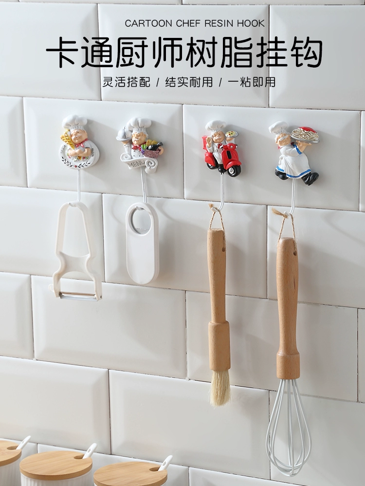 Kitchen chef linked hook -free punching strong glue sticky hook wall -mounted without trace bearing bearing creative cute cartoon hook