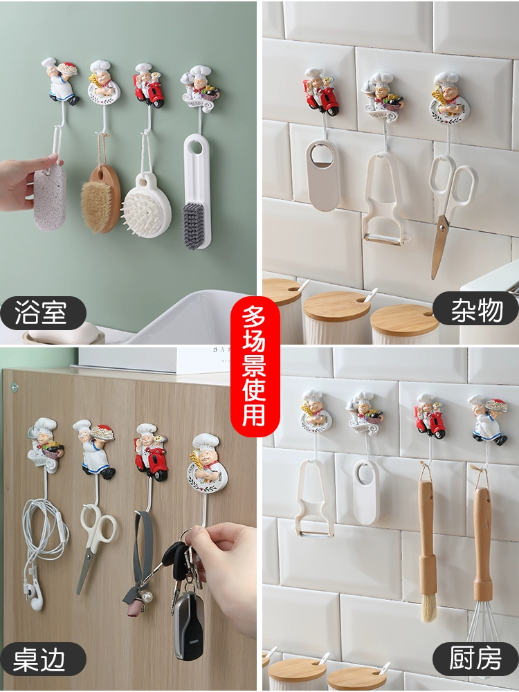 Kitchen chef hook without punching strong adhesive hook wall-mounted traceless load-bearing creative cute cartoon sticker hook
