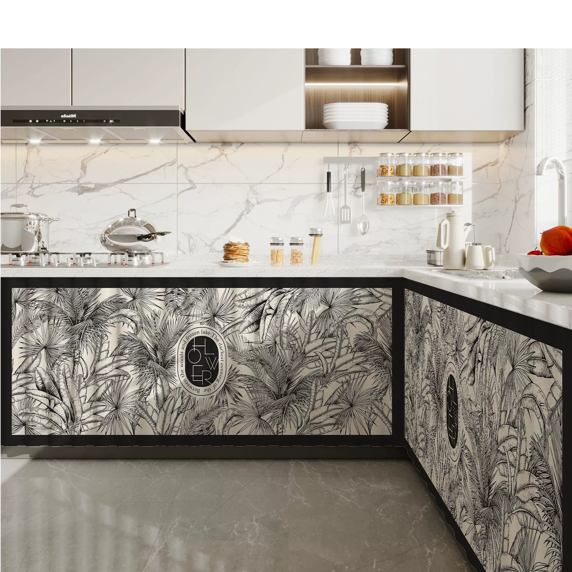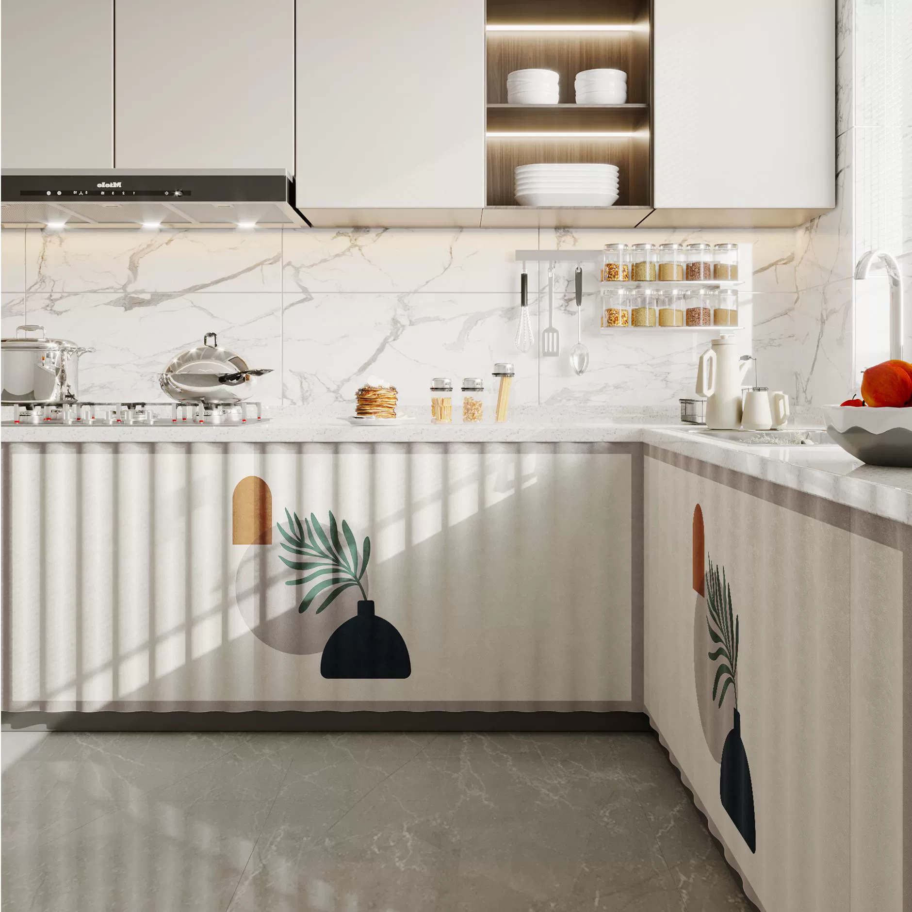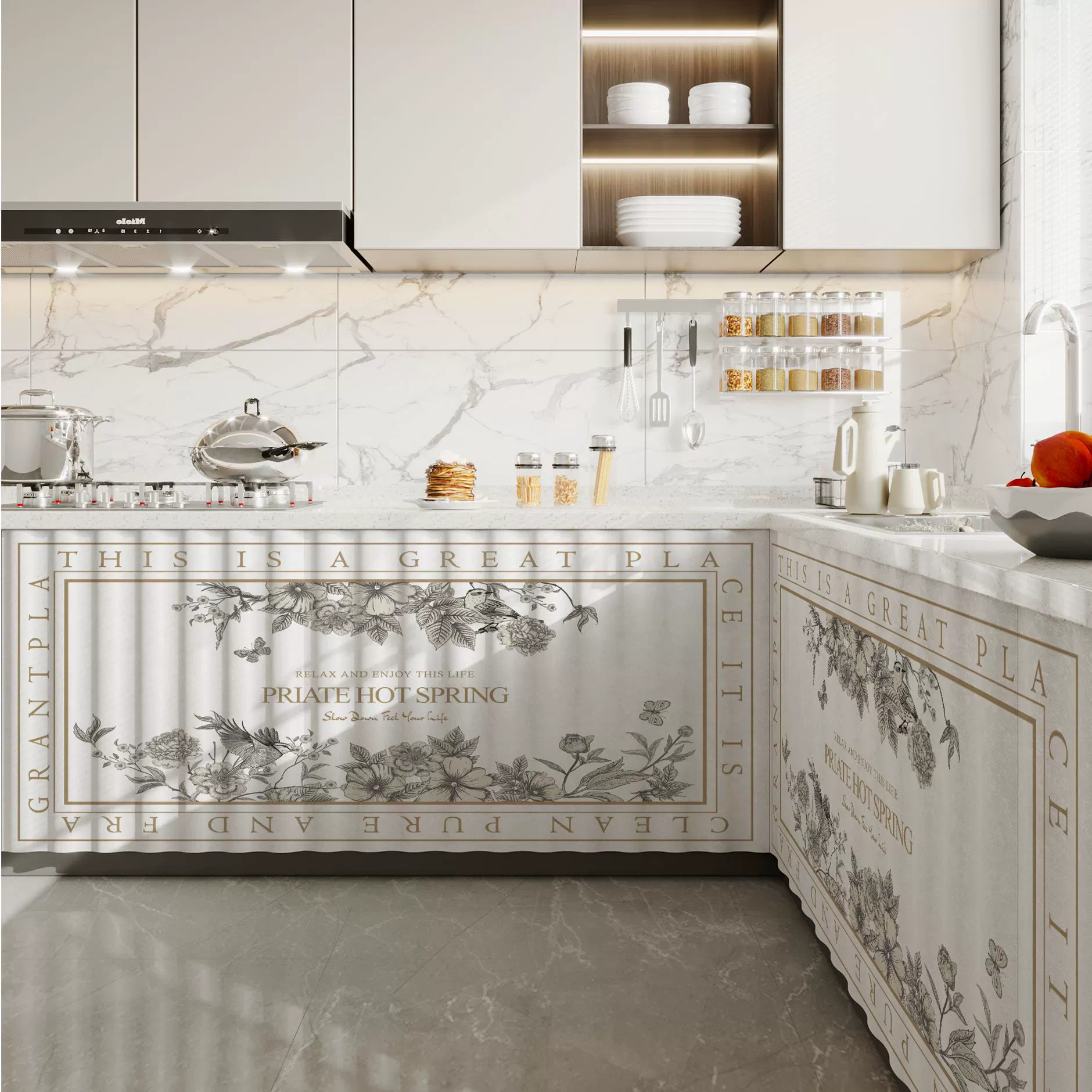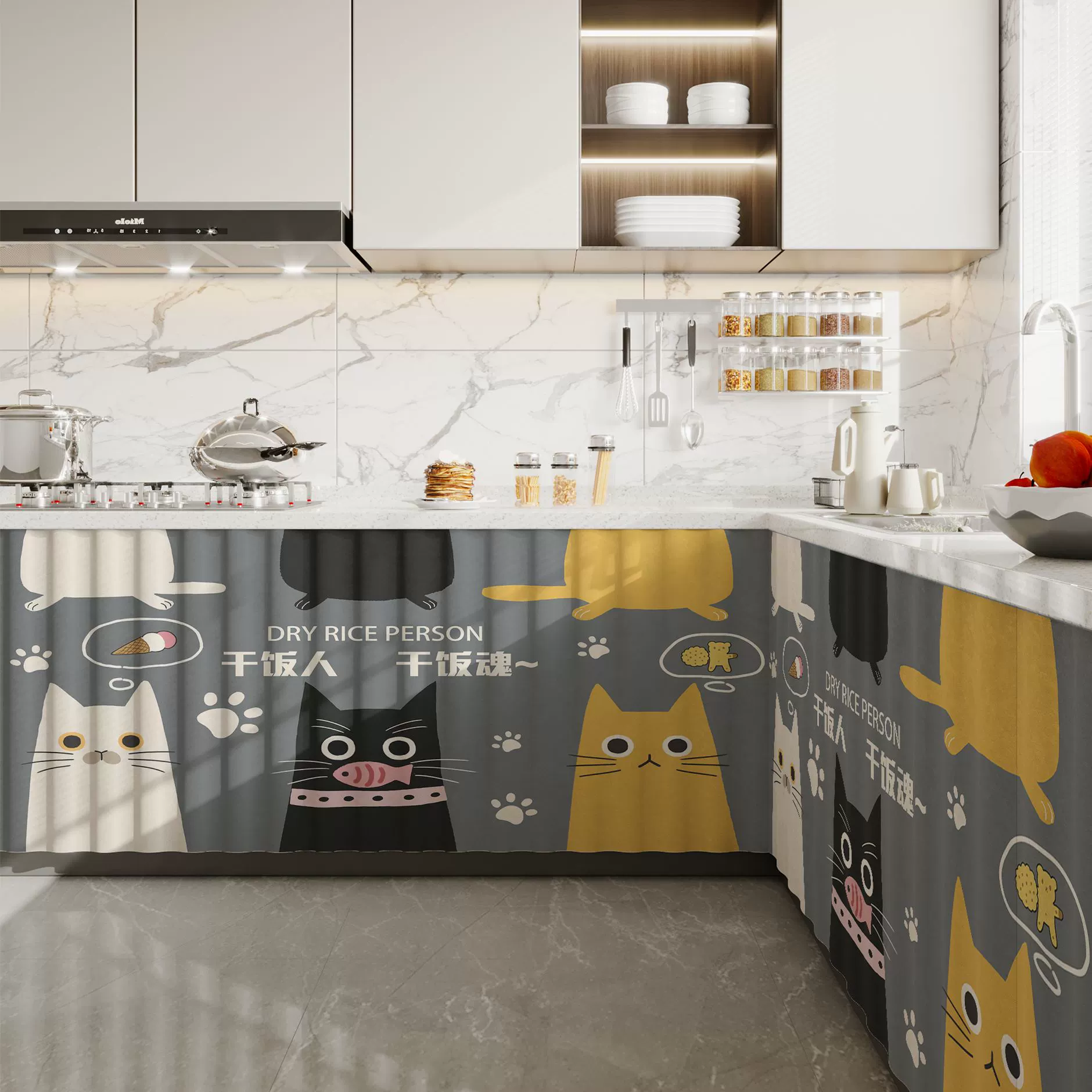 Kitchen curtain waterproof and oil-proof storage rack cabinet slide rail curtain debris dust-proof ugly storage rack curtain