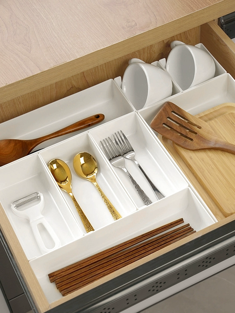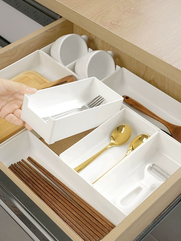 | nameOriginal | Kitchen drawer storage box with built-in cutlery and cutlery compartments, cosmetic organizer box, free combination partition box |