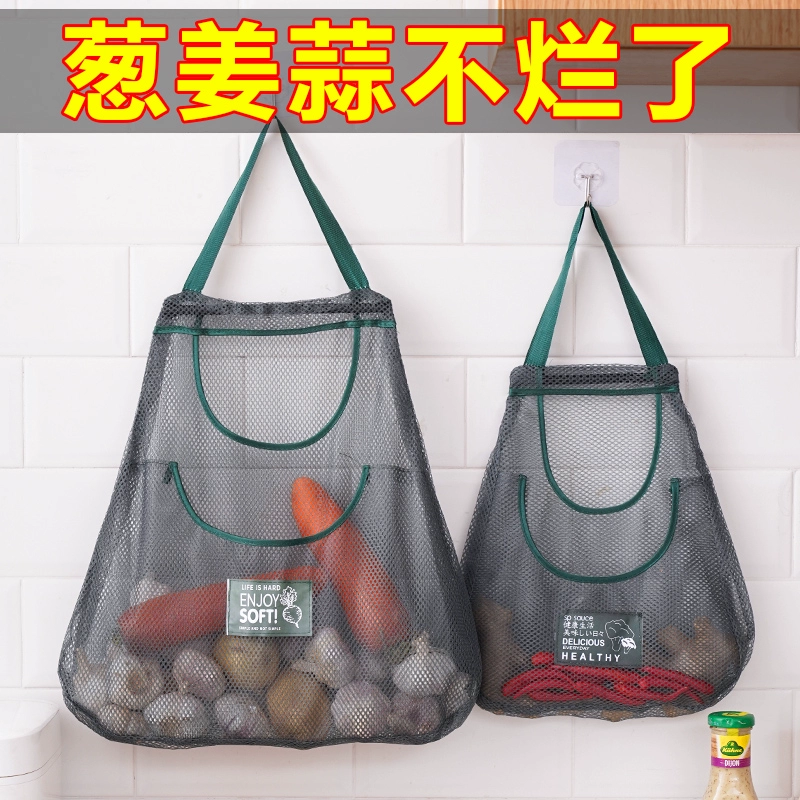 Kitchen garlic and ginger storage fruit and vegetable storage mesh bag ginger and garlic storage bag small cloth bag hanging storage bag wall hanging