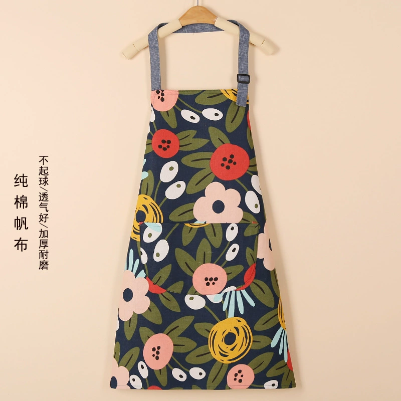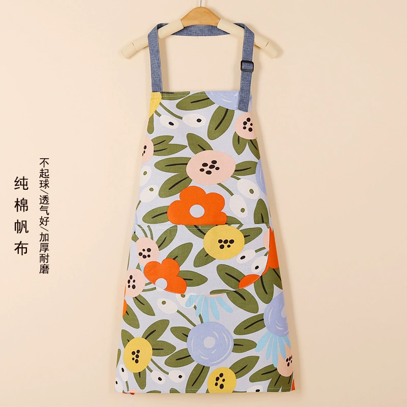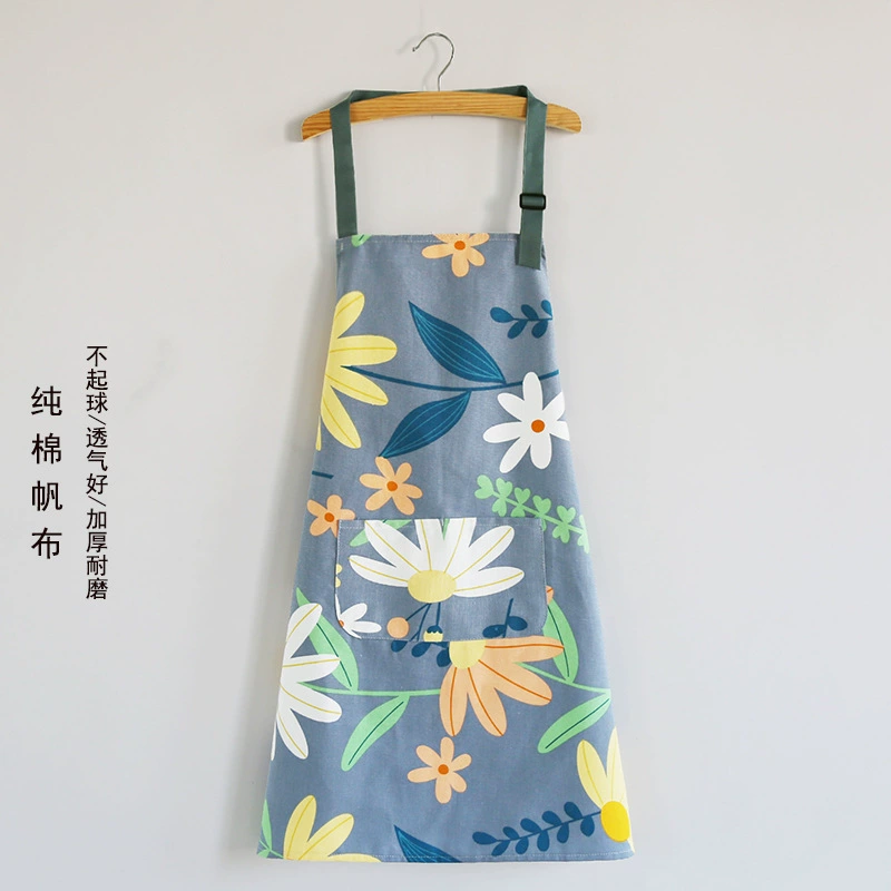 | nameOriginal | Kitchen household 2024 new style cooking apron with pocket for women pure cotton canvas spring and summer thin Internet celebrity ins style |