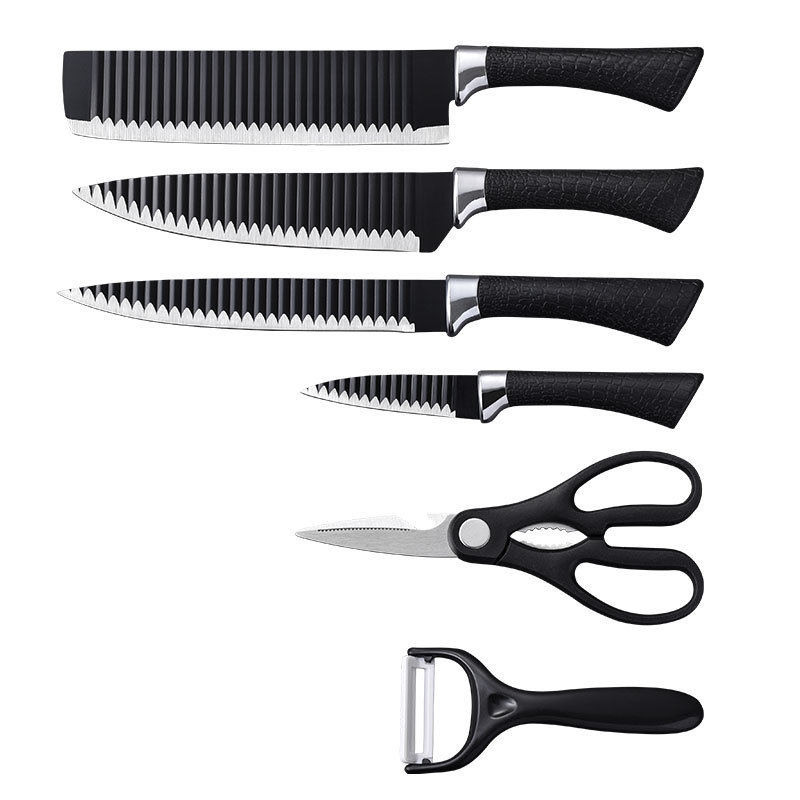Kitchen knives 6-piece kitchen knife chef knife non-stick corrugated knife black wave stripe knife factory in stock direct sales
