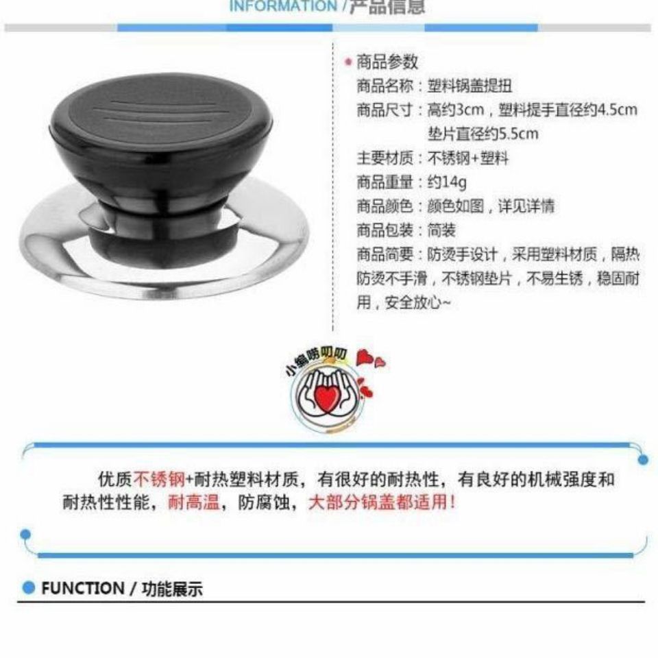 | nameOriginal | Kitchen lid accessories universal stainless steel handle plastic vacuum handle head high temperature resistant top beads |