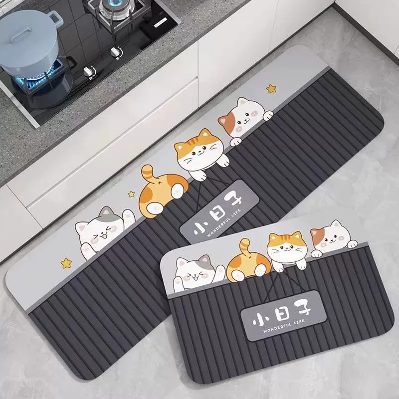 Kitchen long floor mat, non-slip, oil-proof, wipeable, wash-free diatom mud, absorbent mat, doorway, stain-resistant foot mat, home carpet