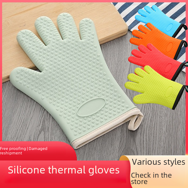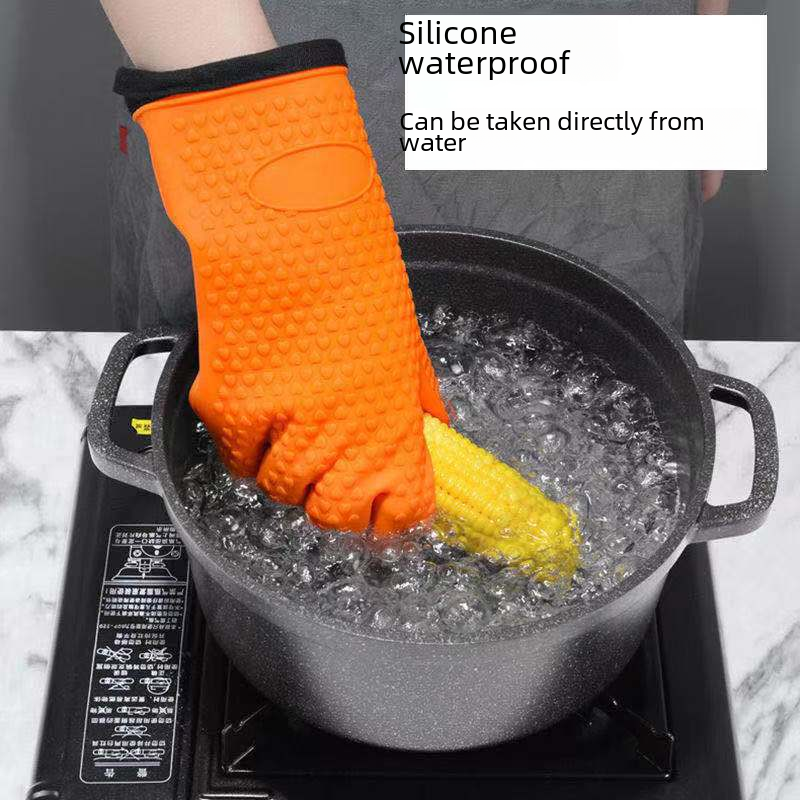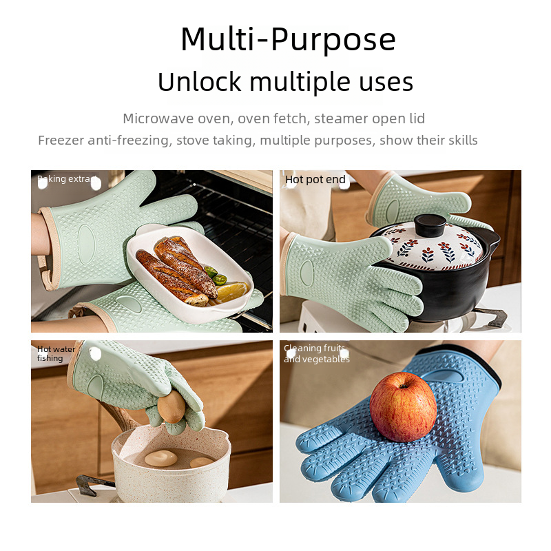 | nameOriginal | Kitchen microwave oven silicone heat insulation oven anti-scald gloves thickened cotton high temperature resistant waterproof household baking gloves |