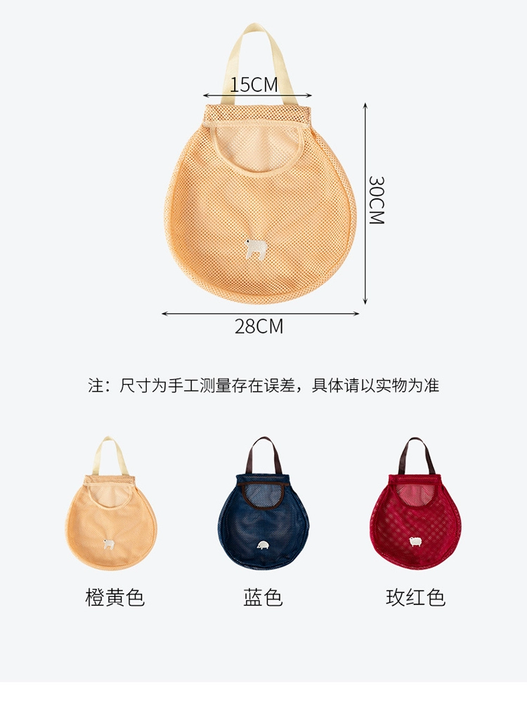 | nameOriginal | Kitchen multifunctional hanging fruit and vegetable storage hanging bag, portable hand-held ginger, garlic and onion hollow breathable storage bag |