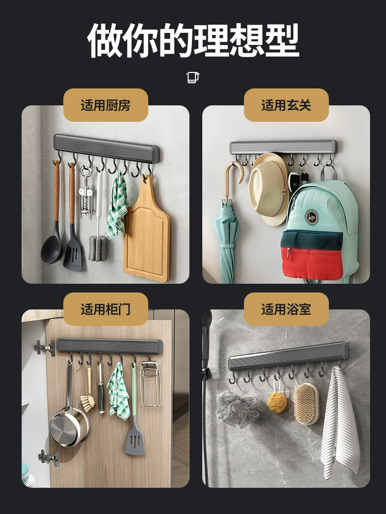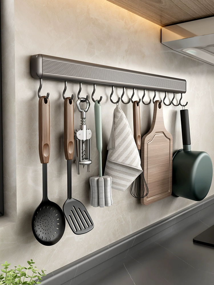 Kitchen -mobble wall -mounted spatula spoon, hanging rack, kitchenware storage rack free punching multifunctional hook rack
