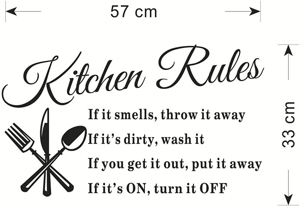 Revamp your kitchen decor with the Kitchen Letter Art Decal that not only adds a unique touch but also spreads information. This durable sticker is made with high-quality materials, ensuring long-lasting usage. Its creative design and quote elevate the overall look of your kitchen while serving as a reminder of essential kitchen rules. The decorative decal is a convenient and innovative addition to your kitchen space, showcasing a stylish quote art that spruces up your interior.