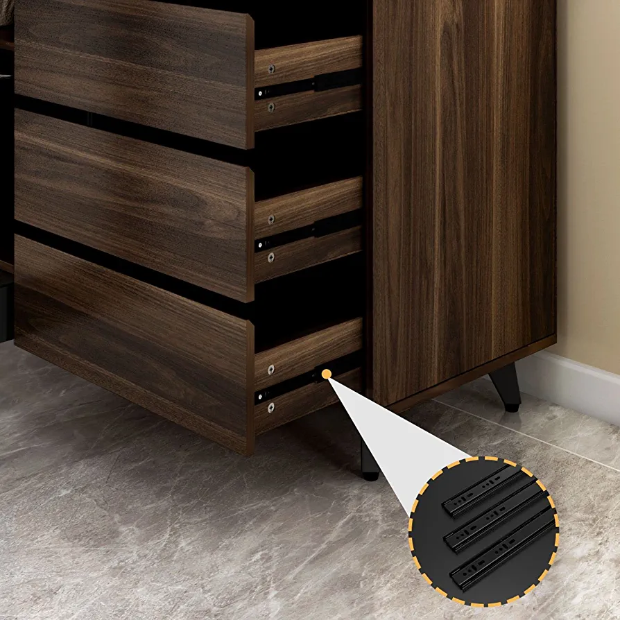 This versatile cabinet is suitable for use in various living spaces, including the kitchen, hallway, entryway, or living room. The cabinet is constructed with thickened particle board, making it stable and durable. The sturdy metal legs effortlessly support the weight of the cabinet, making it suitable for daily use. The smooth veneer surface is easy to clean and maintain.