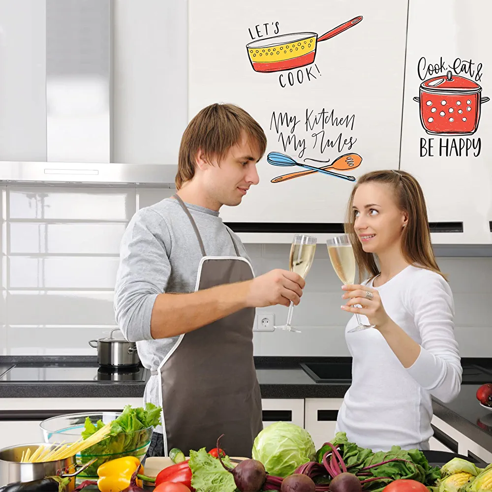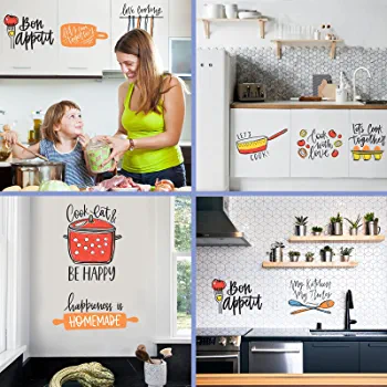 The Wonmon Wall Stickers for Kitchen Decoration are the perfect addition to any kitchen looking to add a touch of personality and charm. These kitchen-themed quotes wall decals feature vinyl funny utensils stickers with sayings that are sure to bring a smile to your face. The stickers are easy to apply and can be placed on any smooth surface, including walls, cupboards, and even dining room walls. The WM136 design is specifically tailored to kitchen decor, making it a great choice for those looking to add a unique touch to their cooking space. These stickers are a great way to add a pop of color and personality to your kitchen, and are sure to be a conversation starter for anyone who sees them.