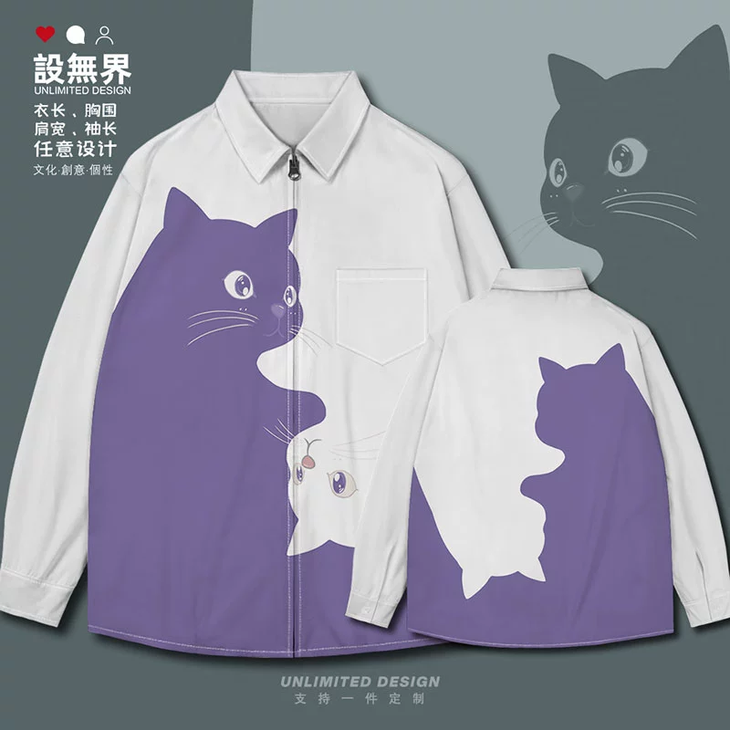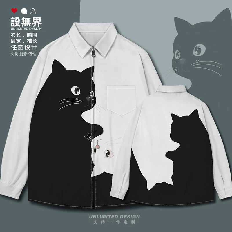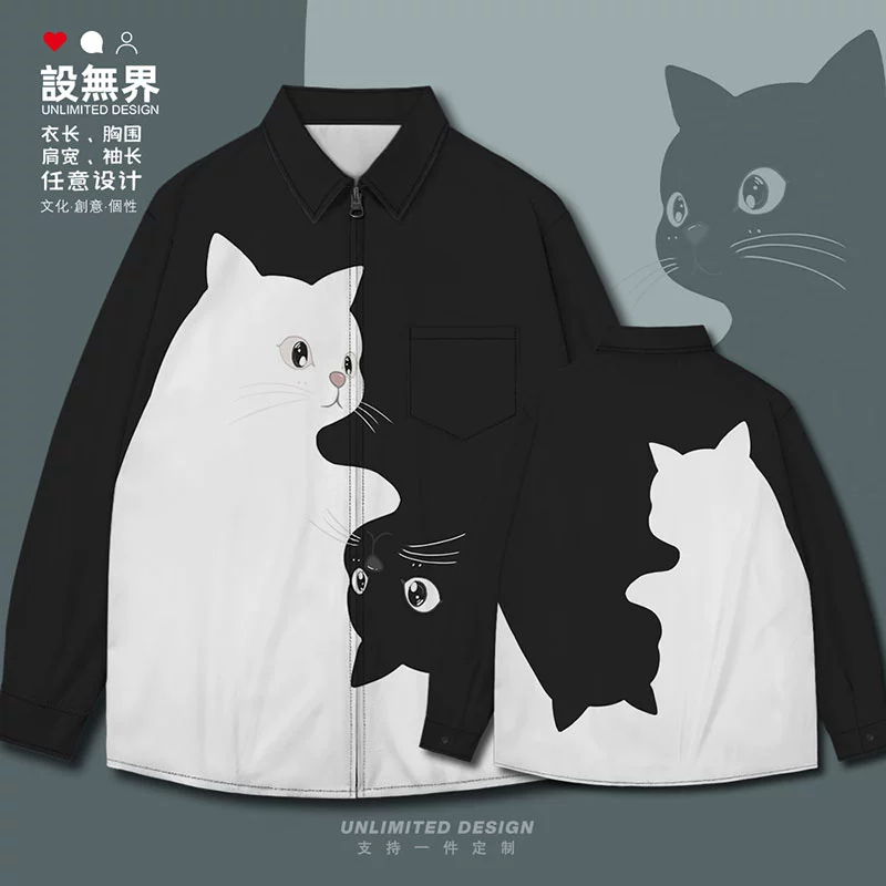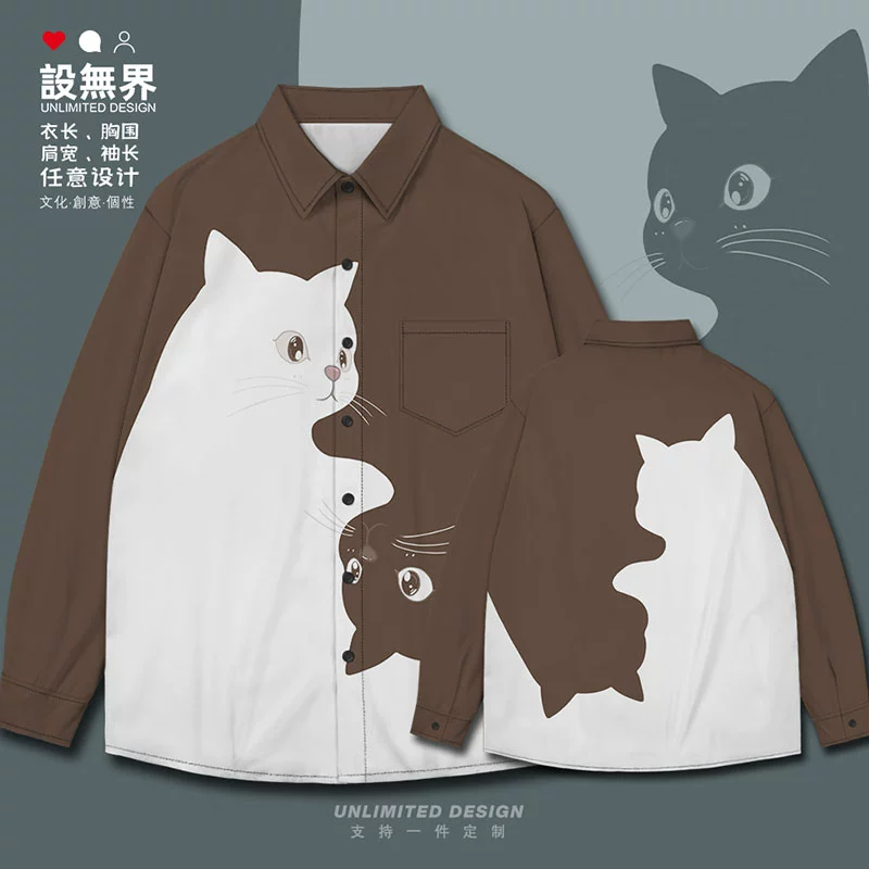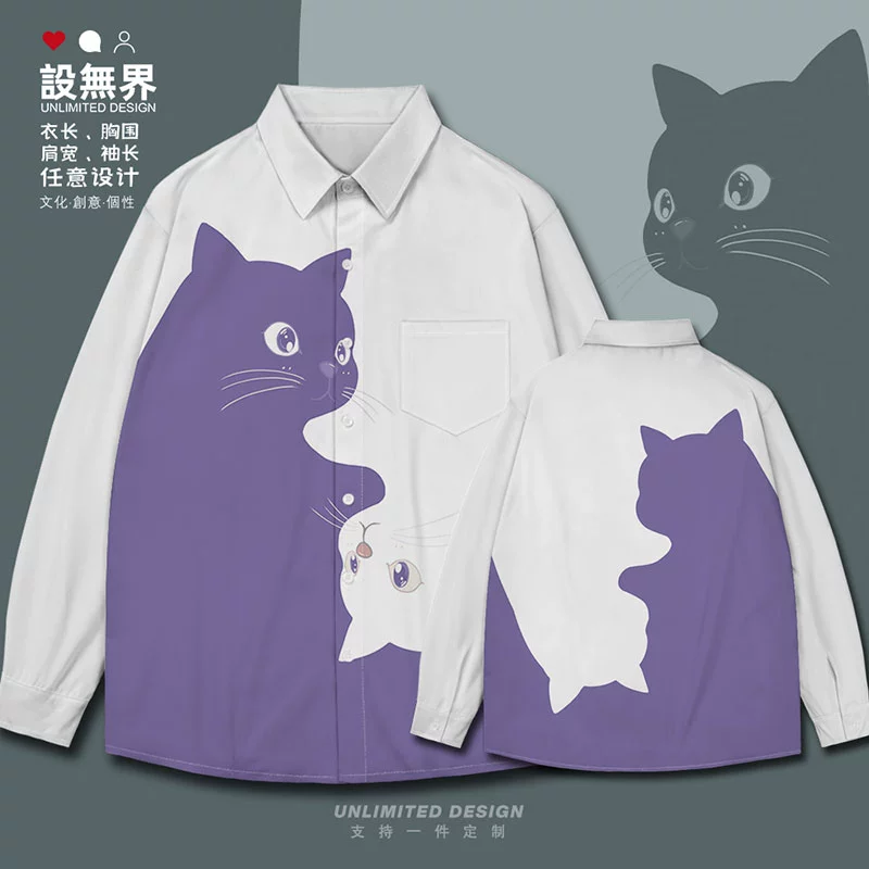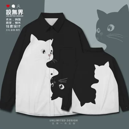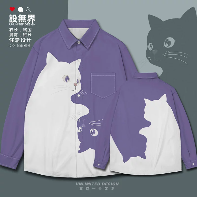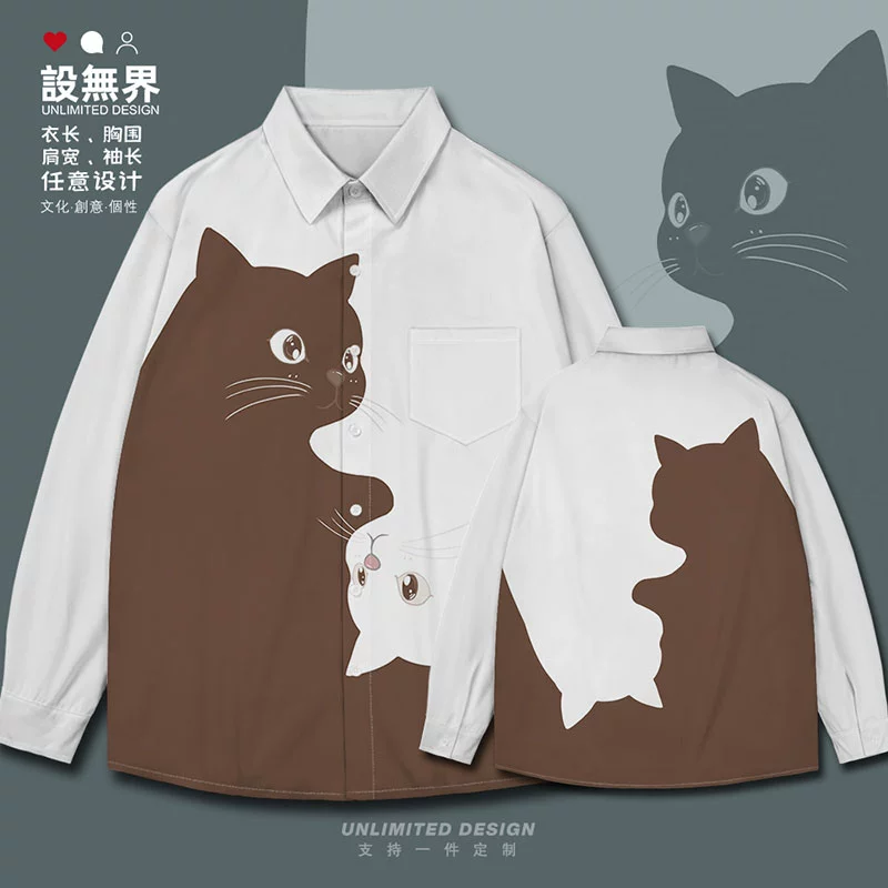 Kitten black and white contrast simple pet long-sleeved shirt