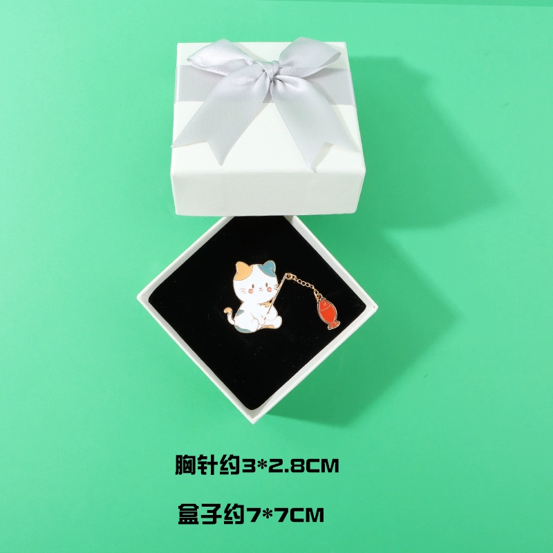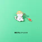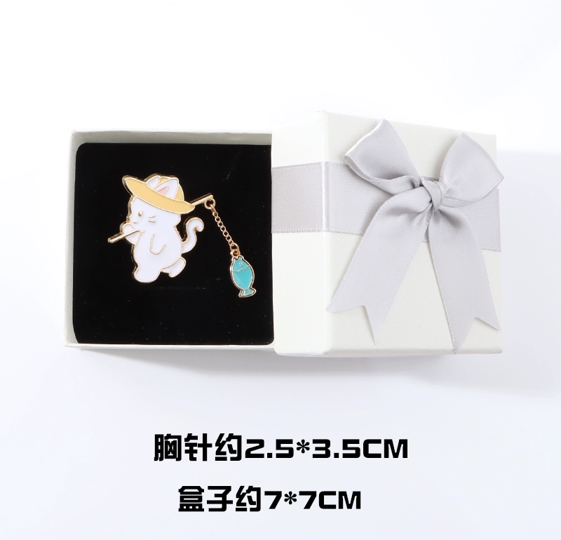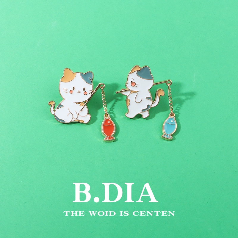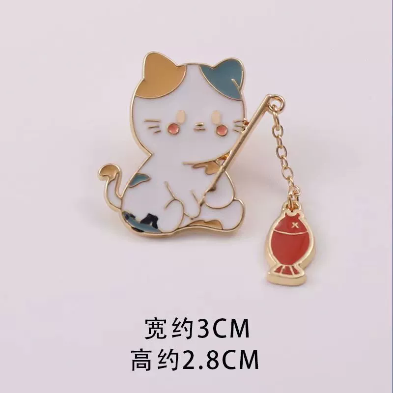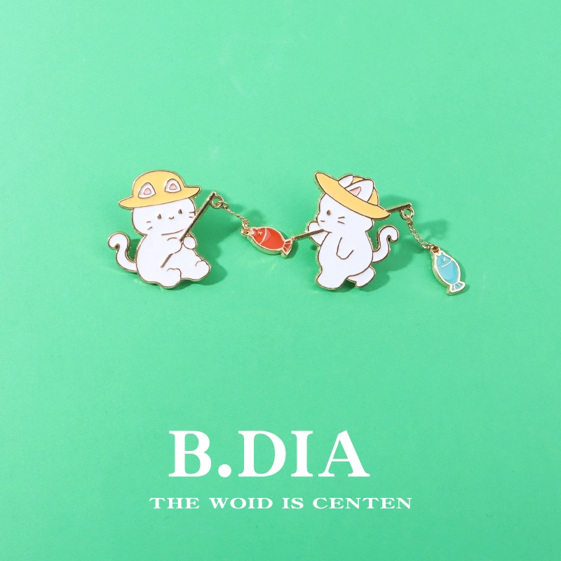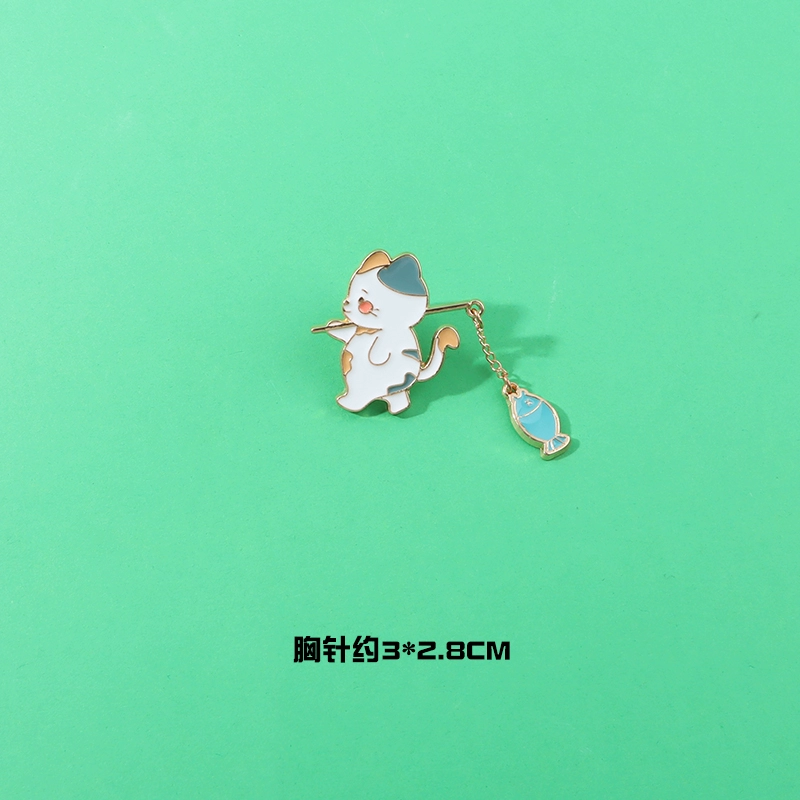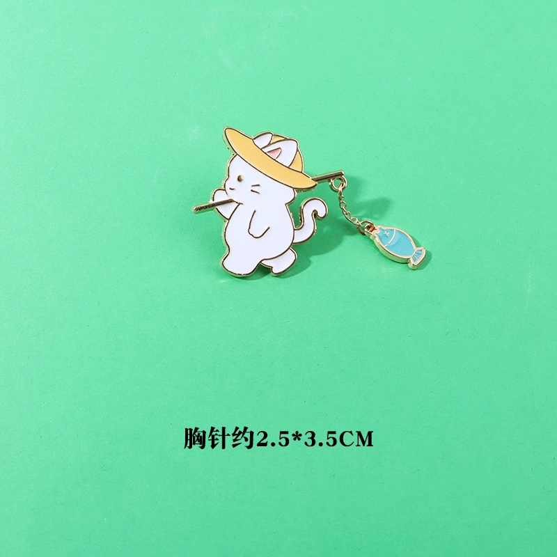 Kitten Fishing Personality Medal Student School Bag Brooch