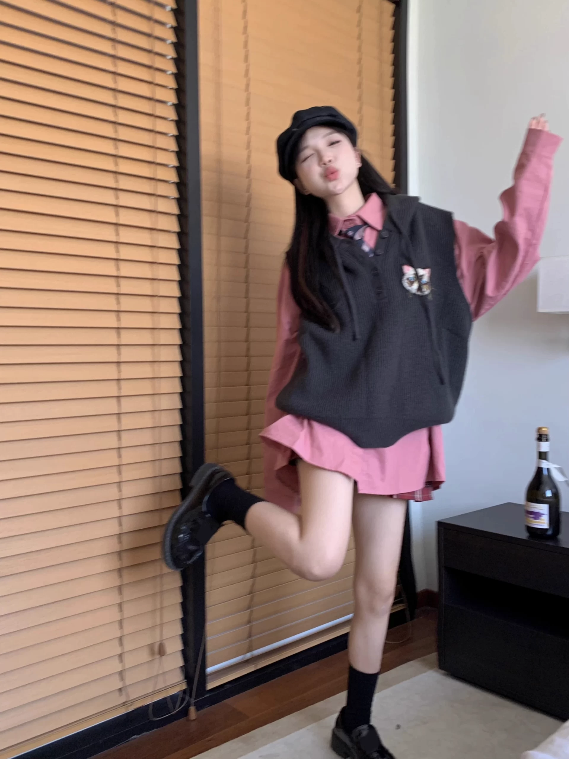 | nameOriginal | Kitten preppy sweater layered with embroidered hood |
