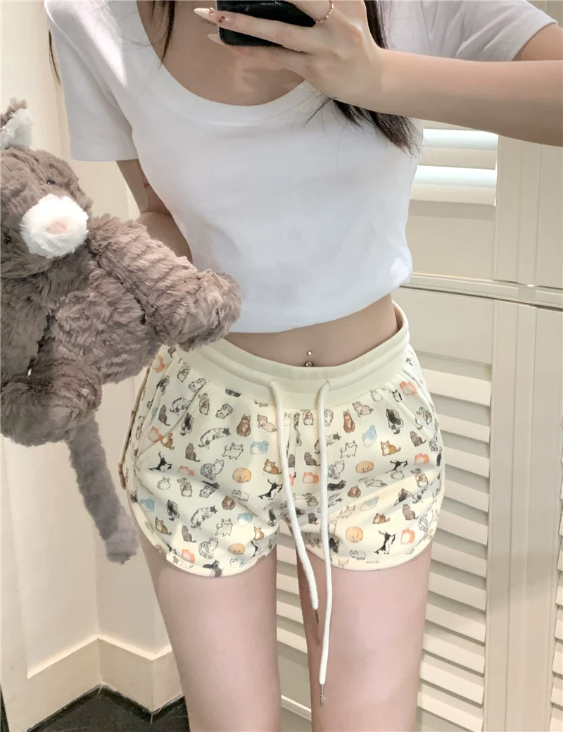 | nameOriginal | Kitten Print Elastic Waist Fashion Shorts Cartoon |