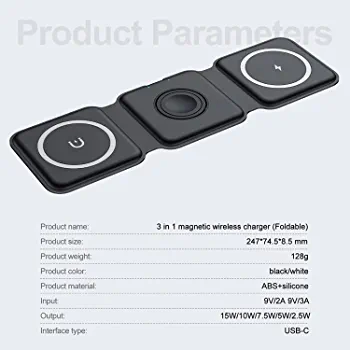 | nameOriginal | 3 in 1 Wireless Charging Station, KIYOSAKI Upgrade Foldable Wireless Charger Magnetic Fast Wireless Charging Pad, Compatible with iPhone 14/13/12/11 Series, Apple Watch, AirPods Pro (Black) |