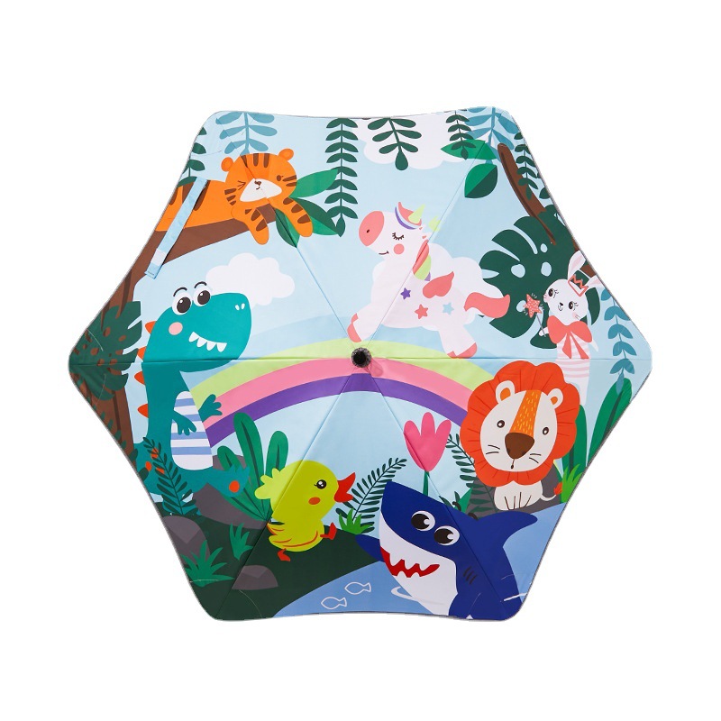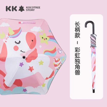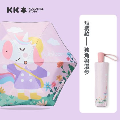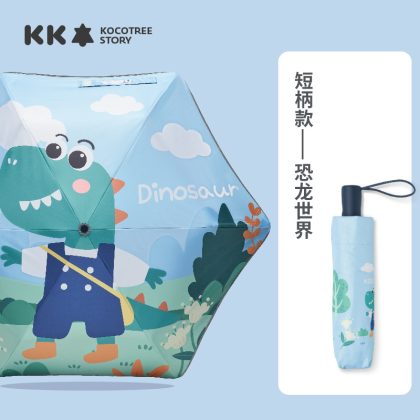 KK Tree Children’s Sunny Umbrella Boys and Girls School Special Kindergarten Two-fold Black Glue Long Handle Automatic Folding Umbrella