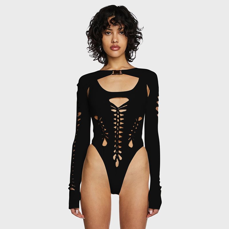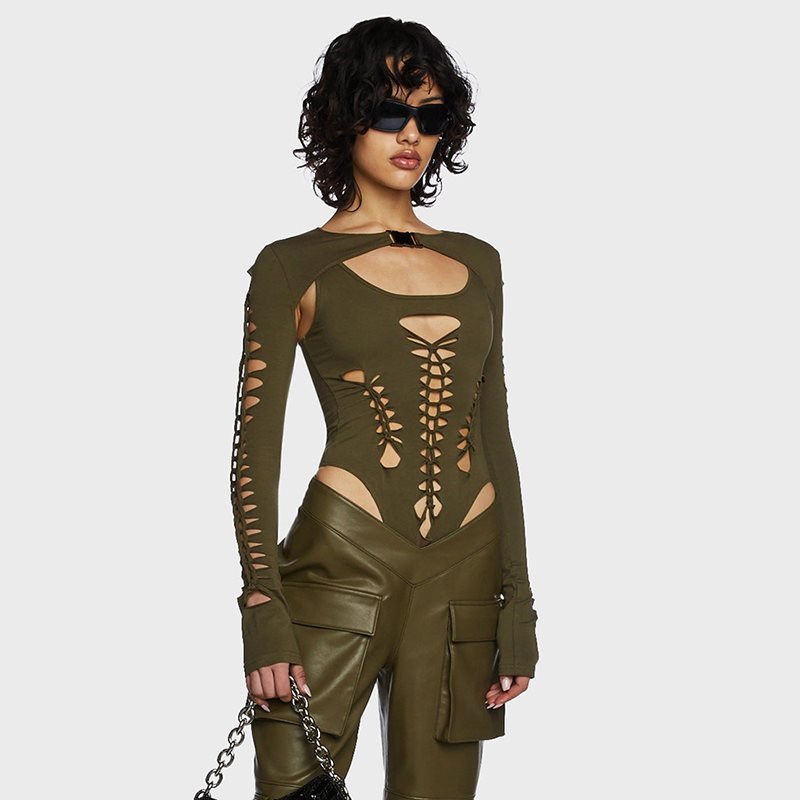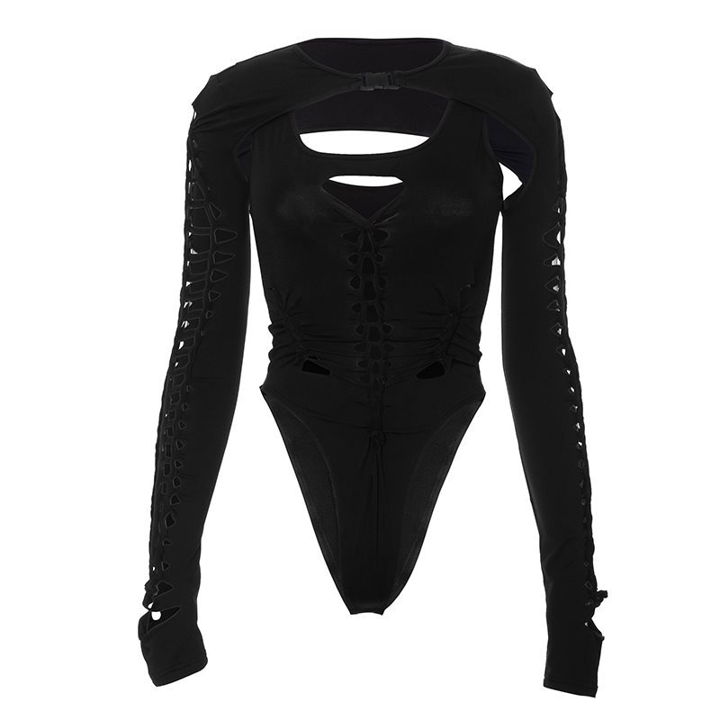 | nameOriginal | KKX European and American Sexy Hollow Low-cut Suspenders Sim Top Street Spice Girl Bag Buckle Long Sleeve Blouse Two-piece Set |