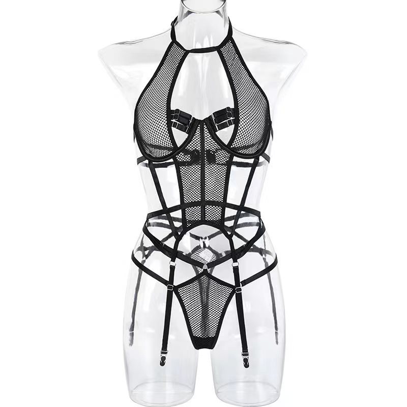 | nameOriginal | KKX European and American Sexy Hollow Mesh Hanging Neck Backless Jumpsuit Street Spice Girl Style Perspective Slim-Fit Base Top |
