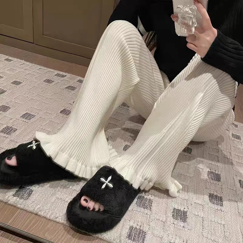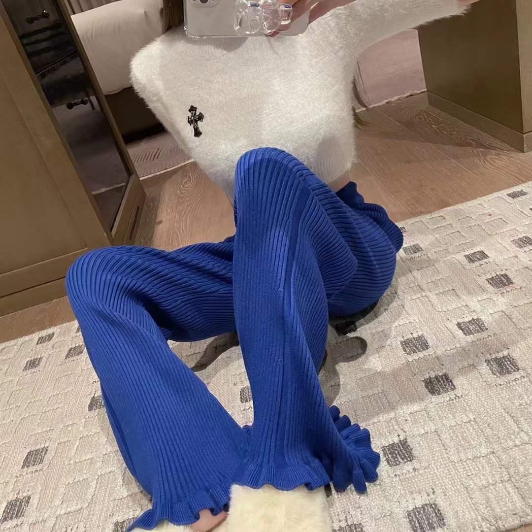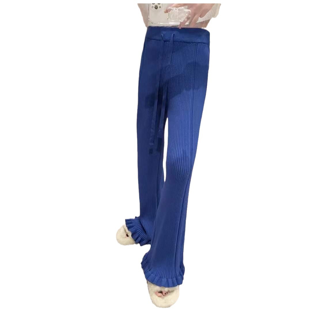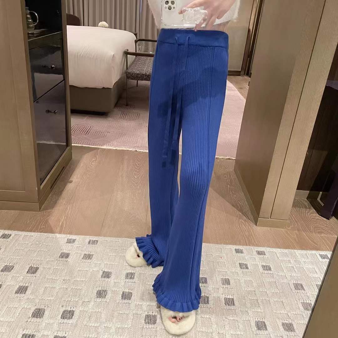| nameOriginal | Klein Blue Drawstring Slimming Straight Casual Pants 2023 Fall/Winter Korean Style Fishtail High Waist Knitted Wide-leg Pants |