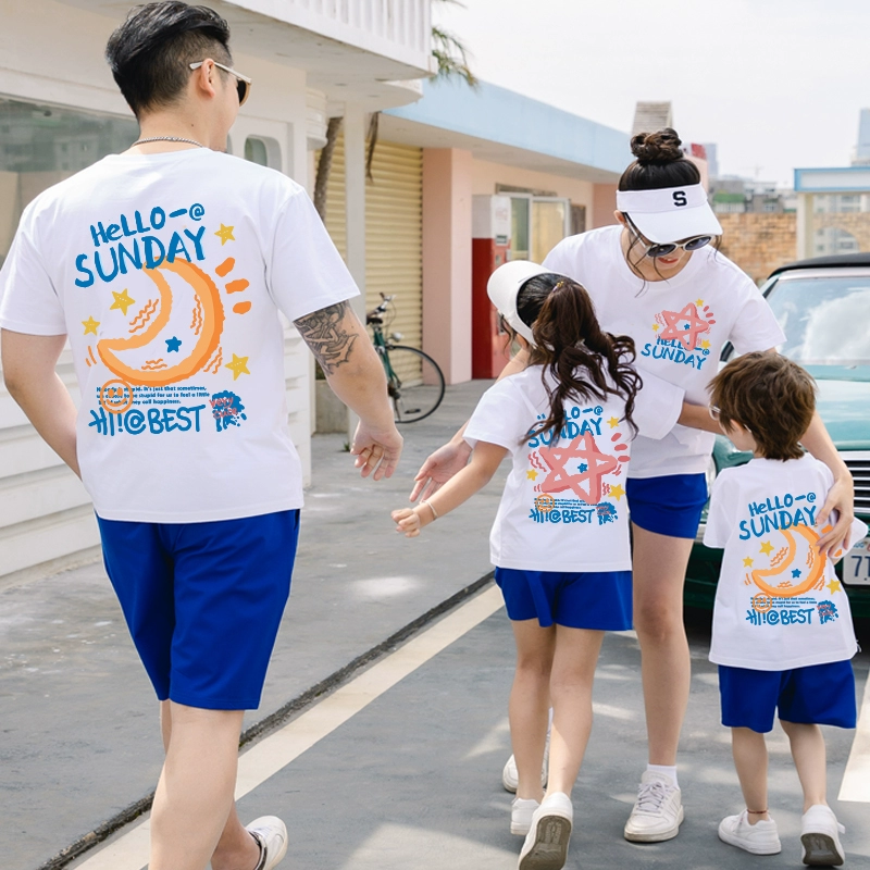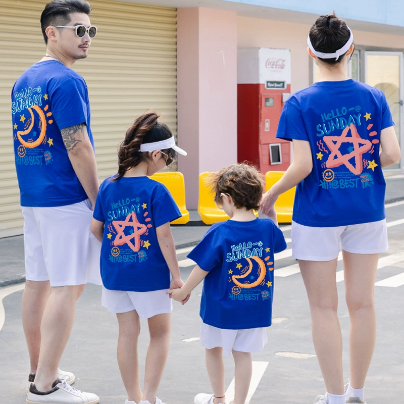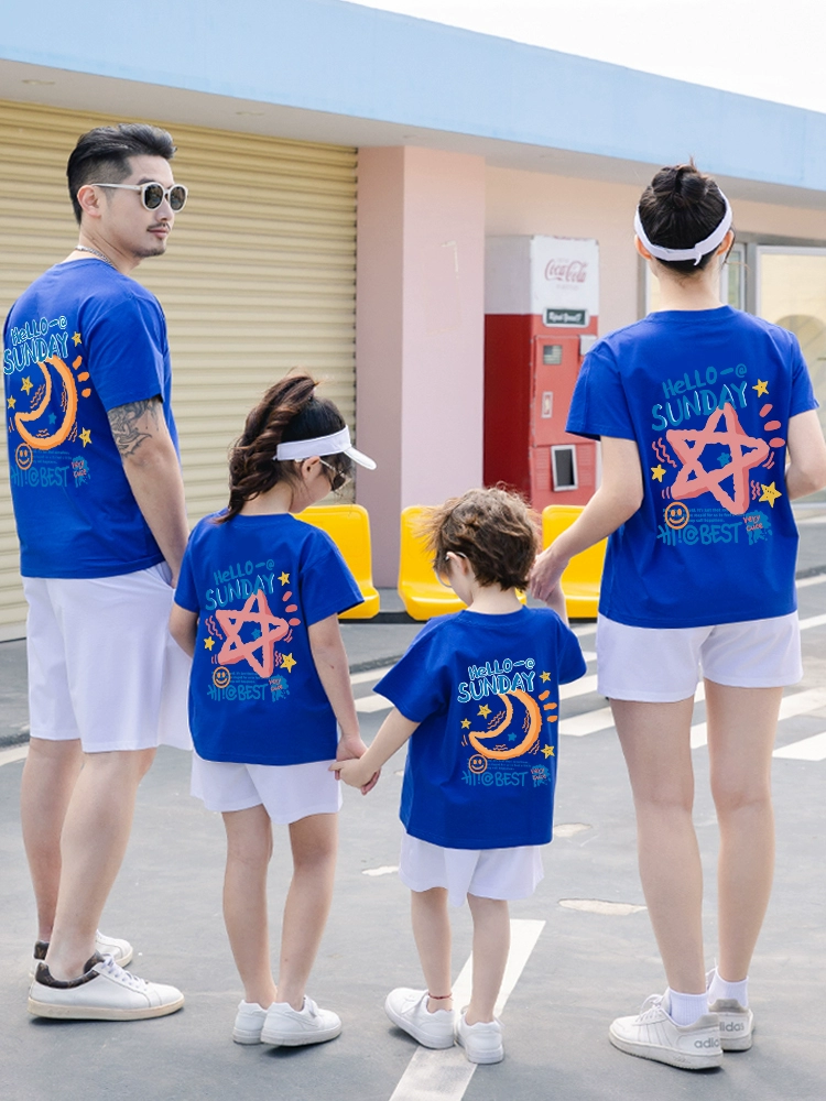 | nameOriginal | Klein blue parent-child summer pure cotton short-sleeved family of three, four, mother, son, mother and daughter 2024 new fashion set |