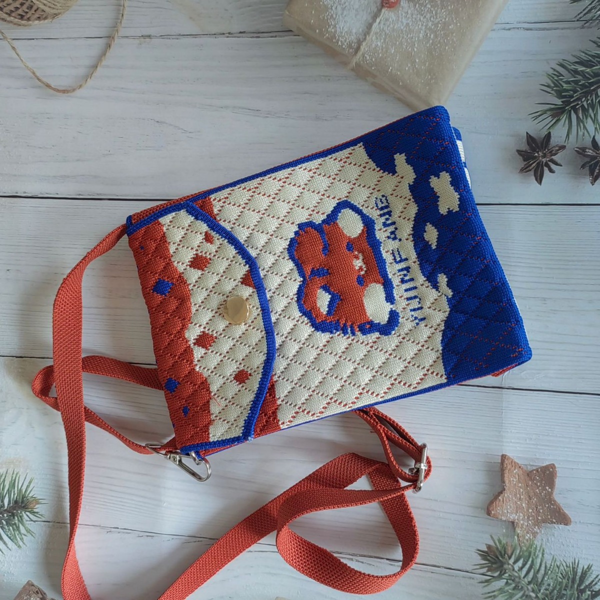 Knitted Bag 2024 New Women’s Adjustable Cute Black and White Panda Mini Mobile Phone Bag Korean Fashion Crossbody Bag