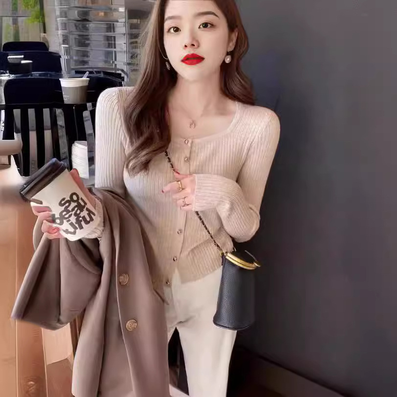 | nameOriginal | Knitted Cardigan Sweater Women's Spring and Autumn New Design Sense Chanel Style Top Western Style Small Square Collar Short Base Shirt Trendy |