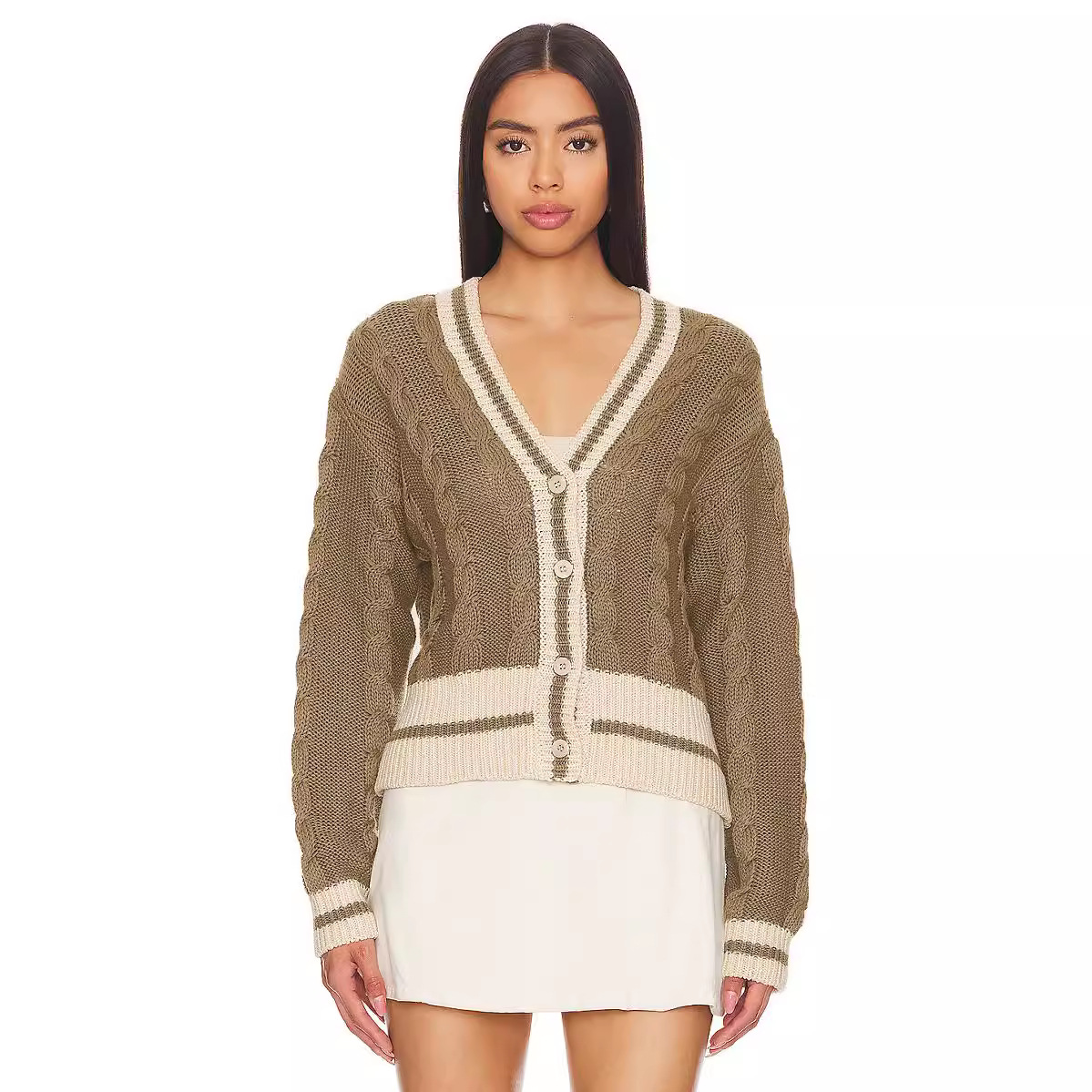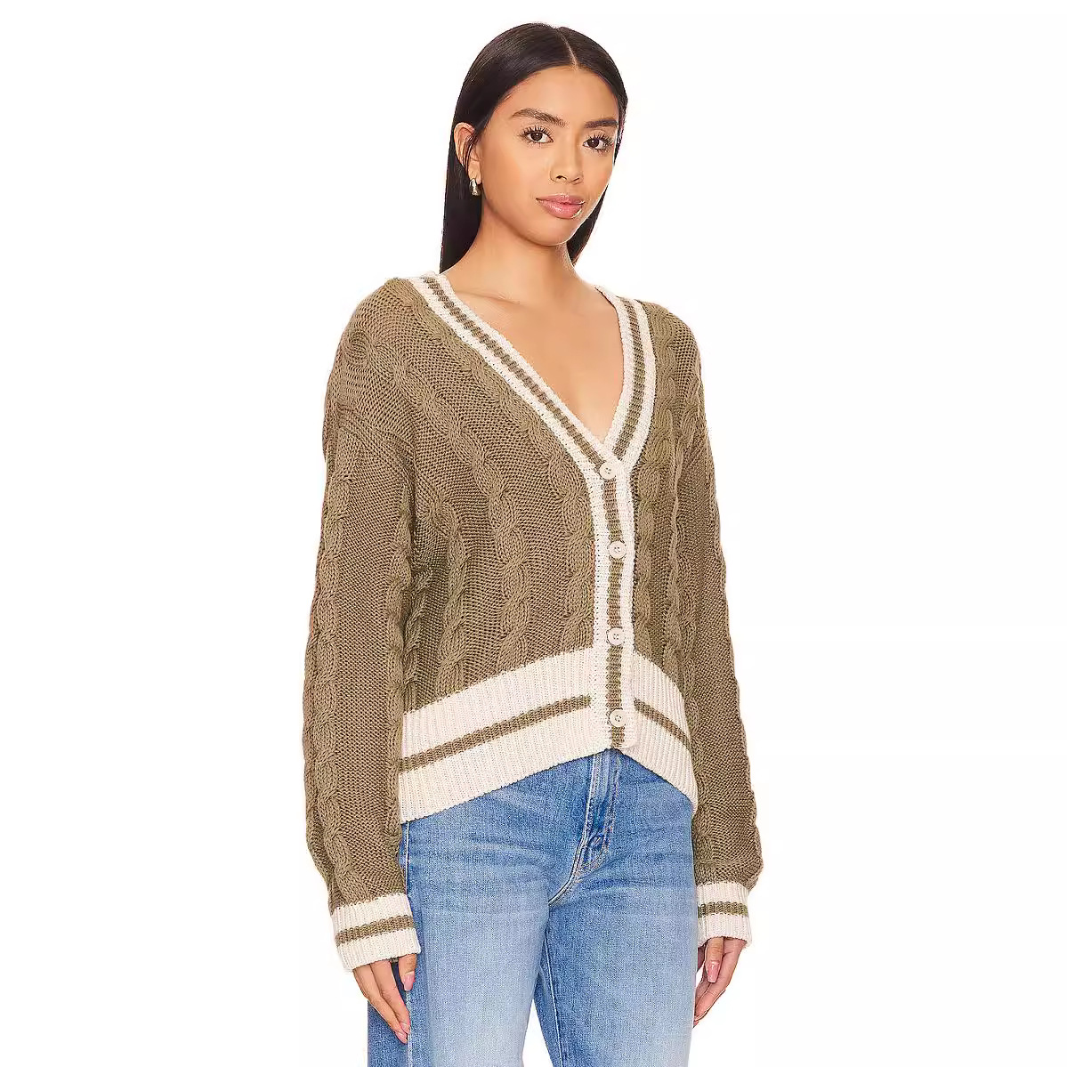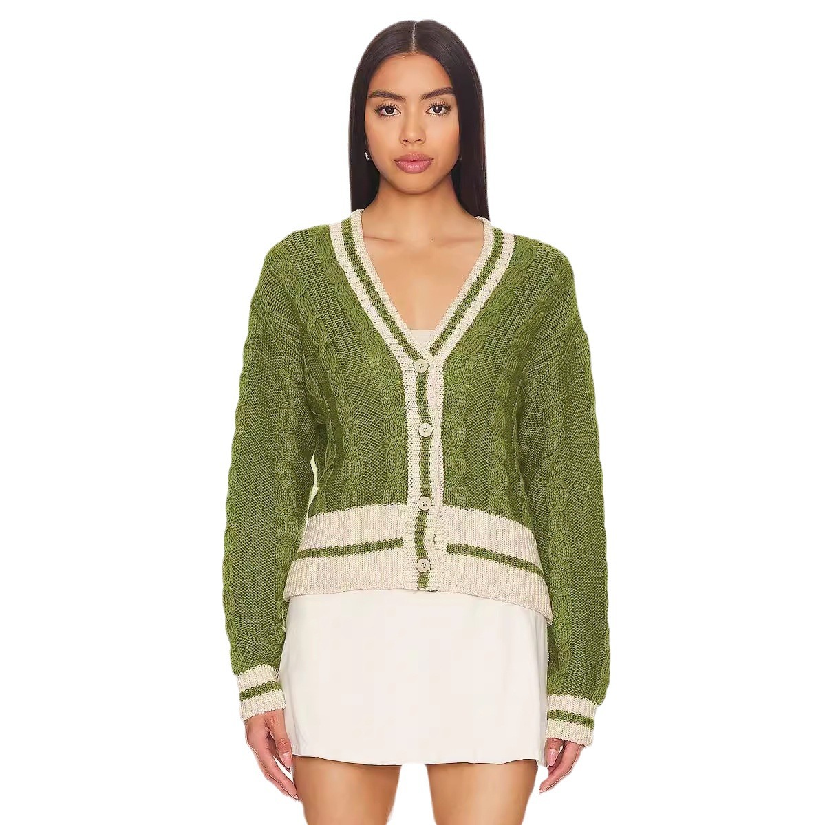 | nameOriginal | Knitted cardigan women's 2024 autumn and winter new European and American cross-border V-neck color matching twist loose knitted sweater cardigan women |