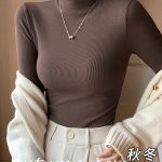 Knitted Half-high Collar Base Shirt Women’s New Autumn and Winter Black and White Inner Wear Styish Mid-high Collar Pullover Long-sleeved Top