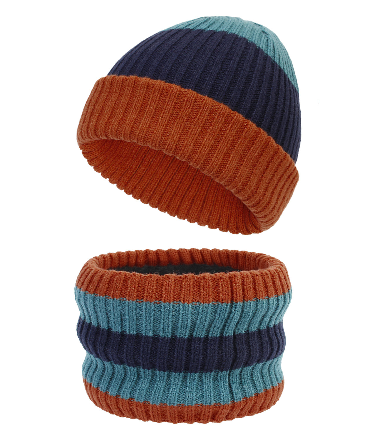 Knitted hat children's cross-border autumn and winter New hat scarf suit striped knitted wool hat 10 colors in stock