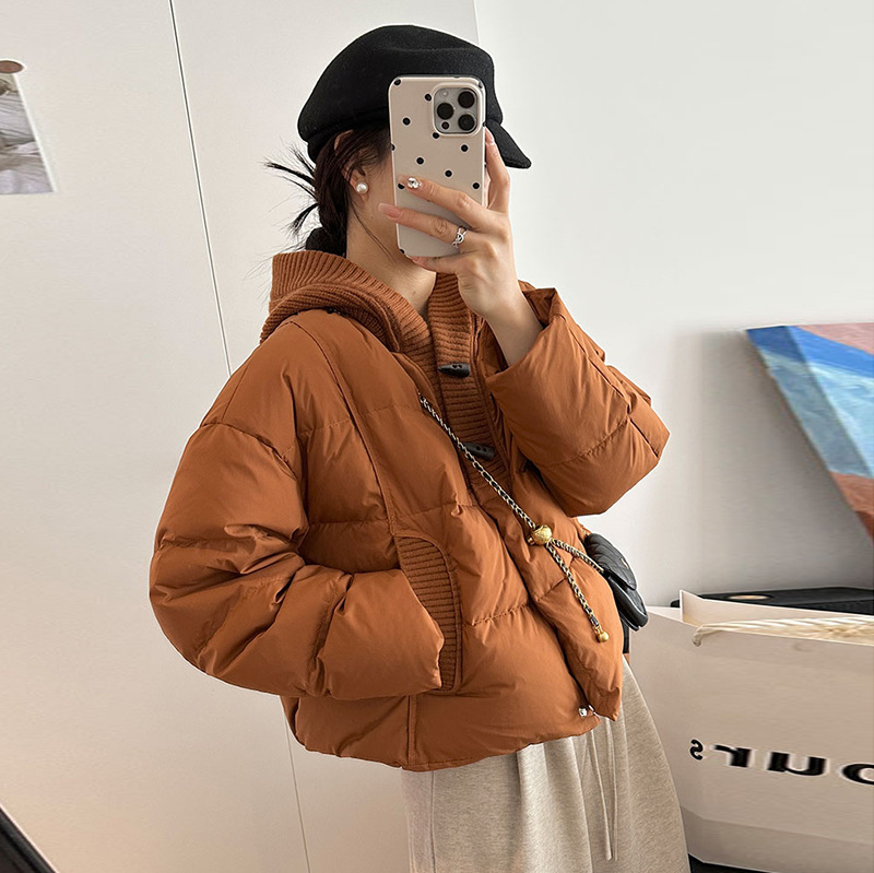 | nameOriginal | Knitted Hat Horn Buckle Down Jacket Women's 2024 Winter New Fashion Design Sense Small Sweet Slim Jacket |
