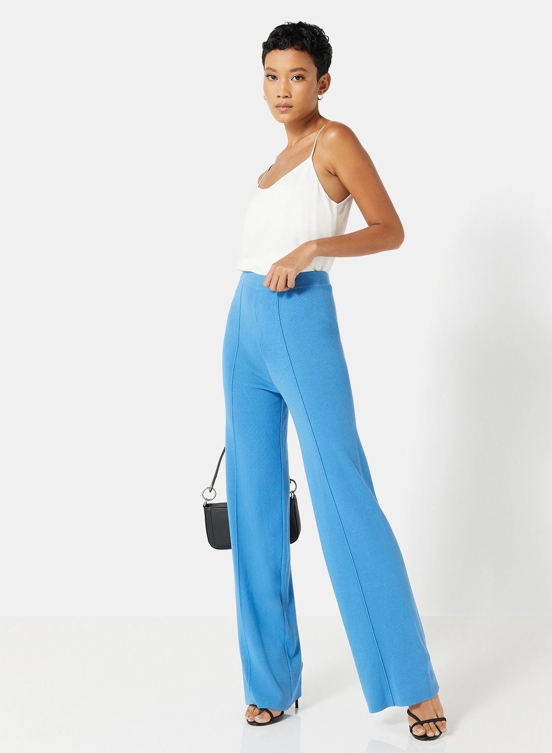 This product features a blend of viscose fabric that is both soft and comfortable. It has a high-rise design with an elasticated waist for a secure fit. The straight fit provides comfort and ease of movement. To maintain its quality, please follow the care label instructions when washing. The model wearing the product is approximately 172 cm tall and is wearing a size S.