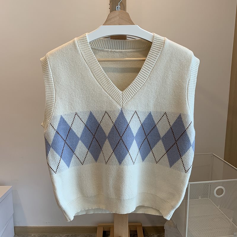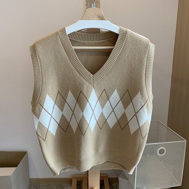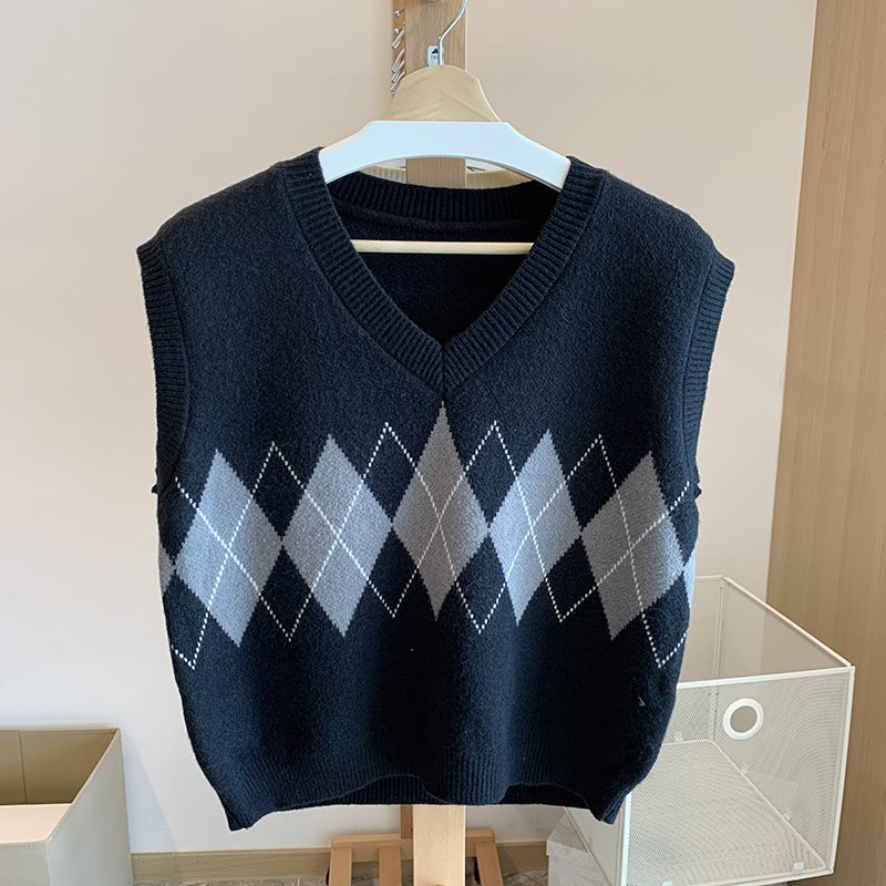 | nameOriginal | Knitted Retro Diamond Vest Women's Commuter 2022 Autumn All-match Sleeveless Chanel Style Top Loose Outer Wear |
