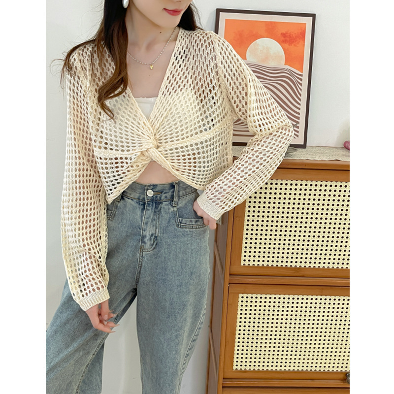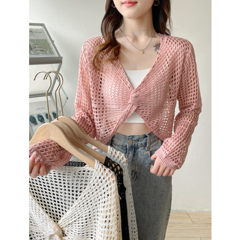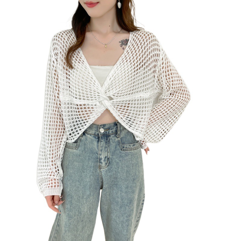 Knitted Shawl Mesh Slip Skirt Outer Jacket Women's Summer Loose Hollow Thin Cover Short Air-conditioning Shirt Sunscreen Clothing