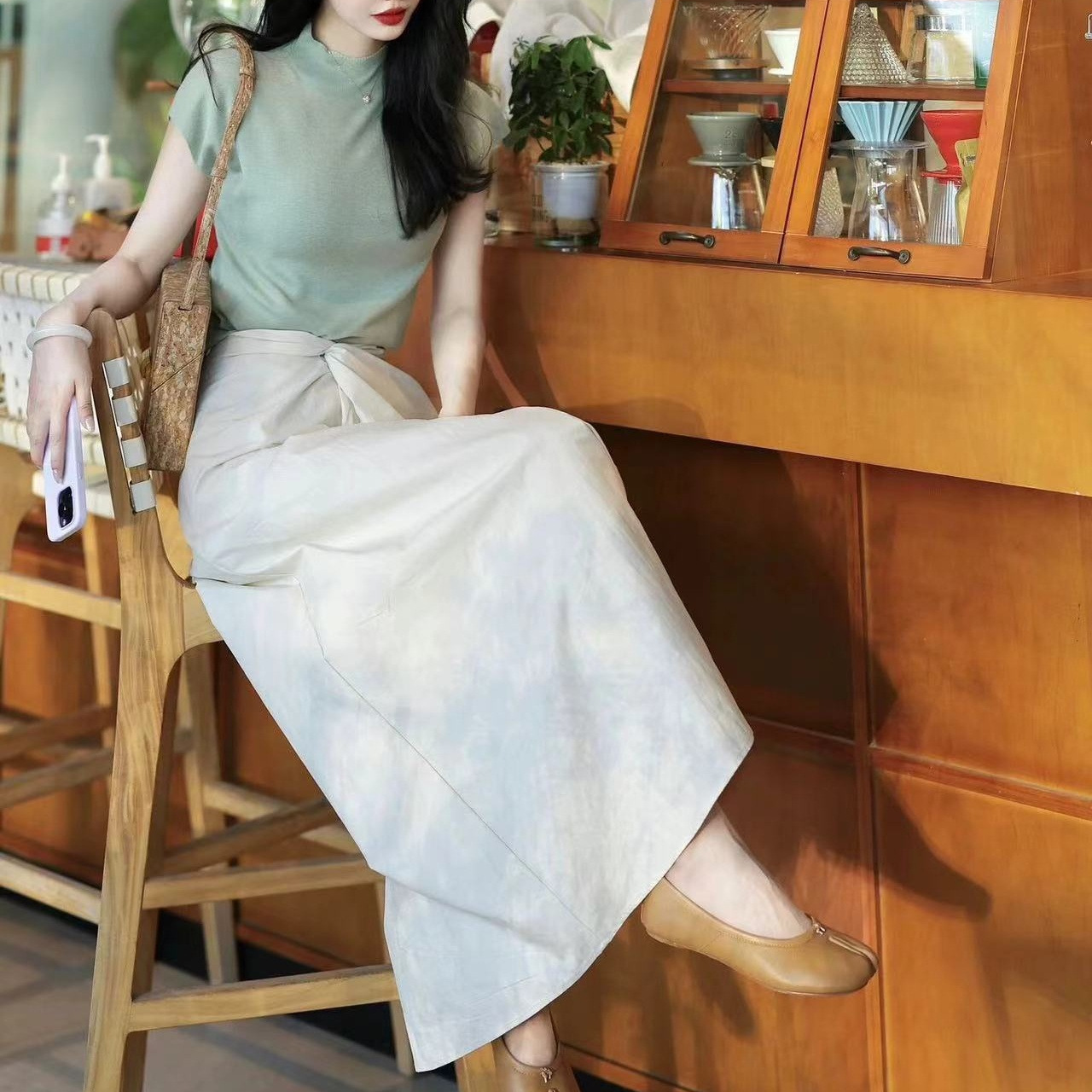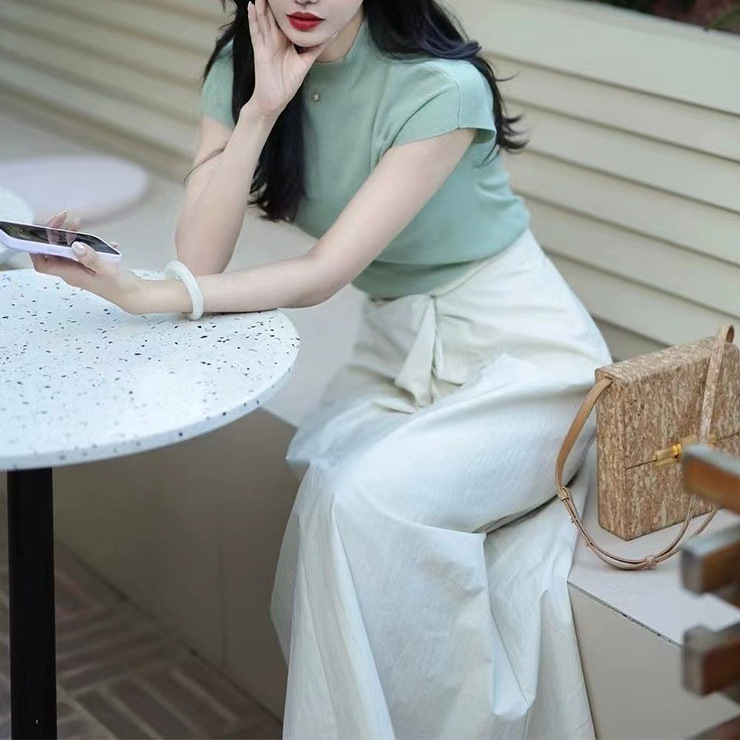 | nameOriginal | Knitted short sleeve 2024 new summer mint green gentle age-reducing slim coat women-MY |