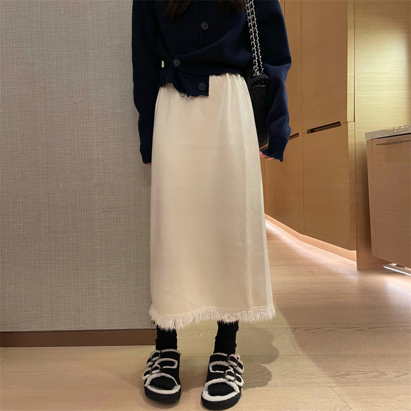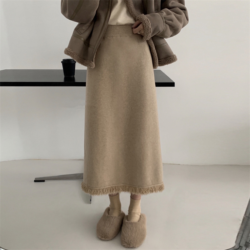 | nameOriginal | Knitted Skirt Women's Spring and Autumn New Tassel Split A- Line Large Size Chubby Girl Mid-Length Wrap Hip Woolen Long Skirt |