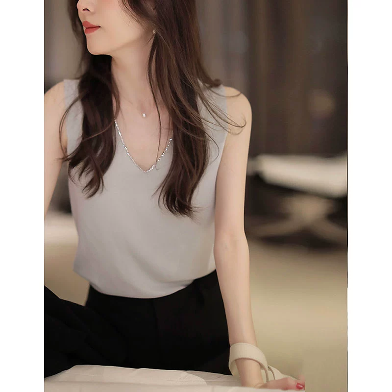 | nameOriginal | Knitted sleeveless V-neck diamond-embellished slim-fitting vest |